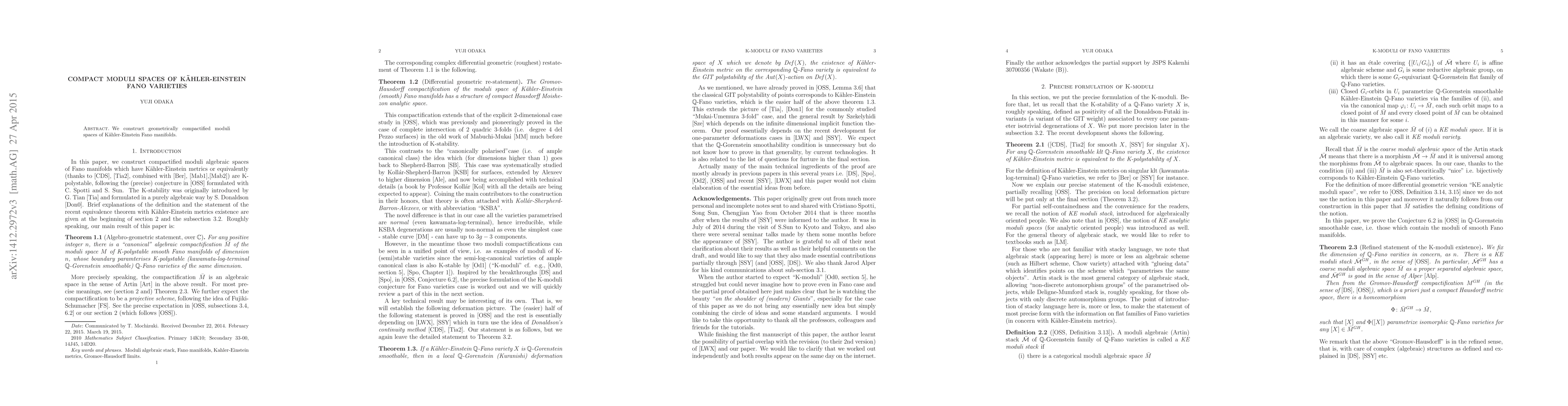 This paper constructs a geometrically compactified moduli algebraic space for Kahler-Einstein Fano manifolds, providing a comprehensive framework for studying these geometric structures. The work achieves a significant step in understanding the compactness and classification of such complex geometrical objects.
