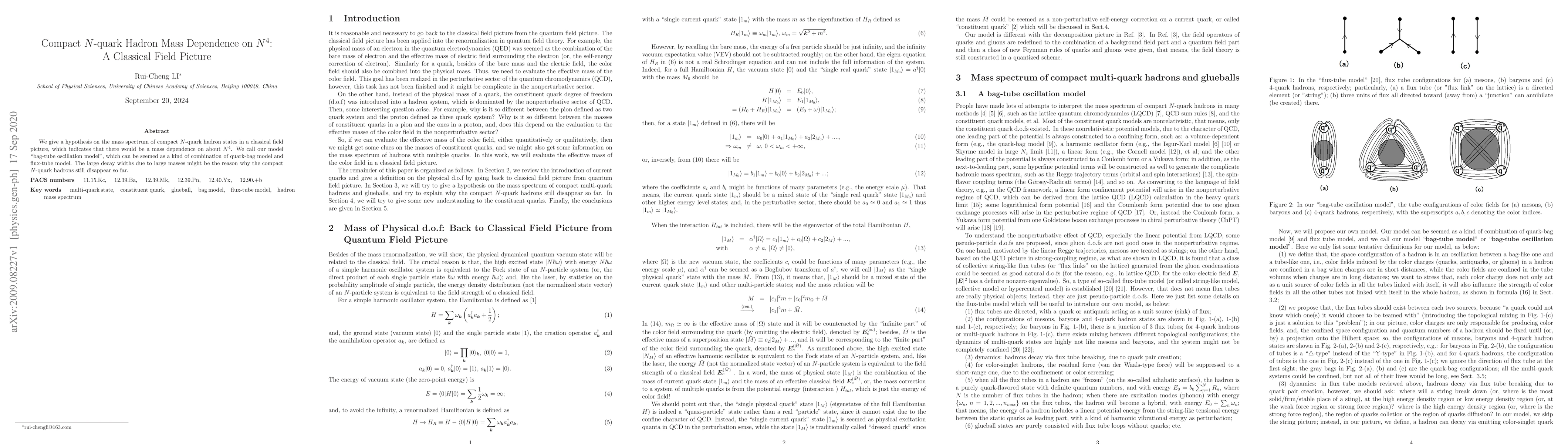 Researchers propose a new model for compact N-quark hadron mass dependence, suggesting it follows an N^4 relationship, which could explain the large decay widths of these particles.