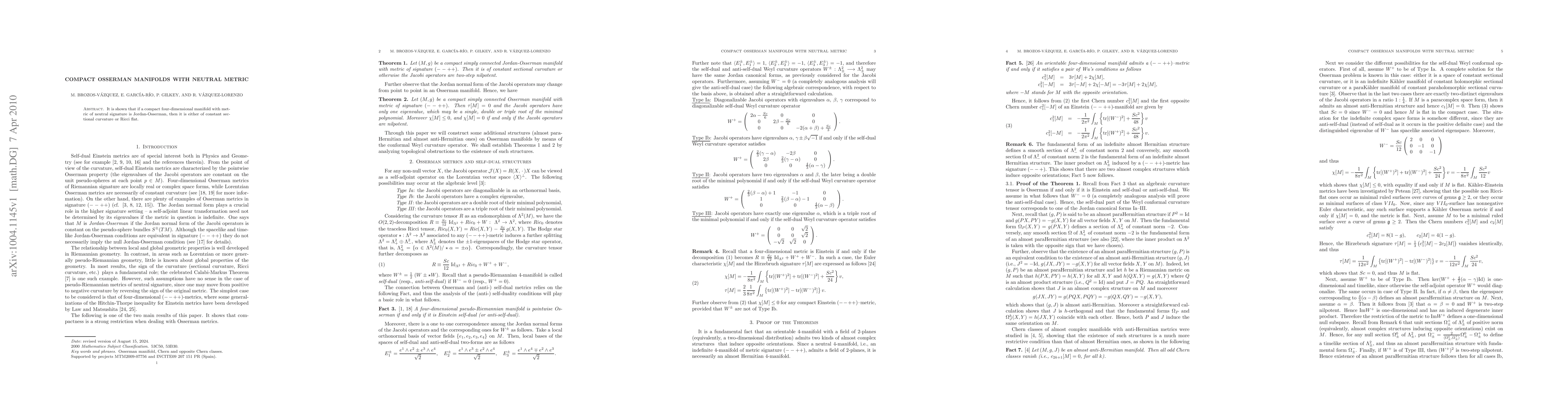 It is shown that if a compact four-dimensional manifold with metric of neutral signature is Jordan-Osserman, then it is either of constant sectional curvature or Ricci flat.