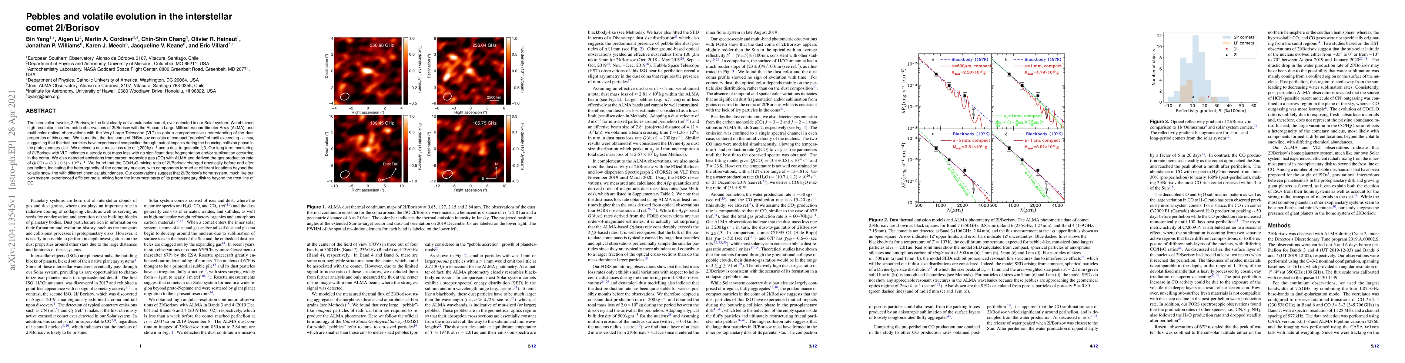 This study uses ALMA and VLT observations to analyze the interstellar comet 2I/Borisov, revealing compact "pebbles" in the dust coma and a steady dust mass loss. The findings suggest the comet's nucleus has heterogeneous components with varying chemical compositions, indicating efficient radial mixing in its protoplanetary disk.