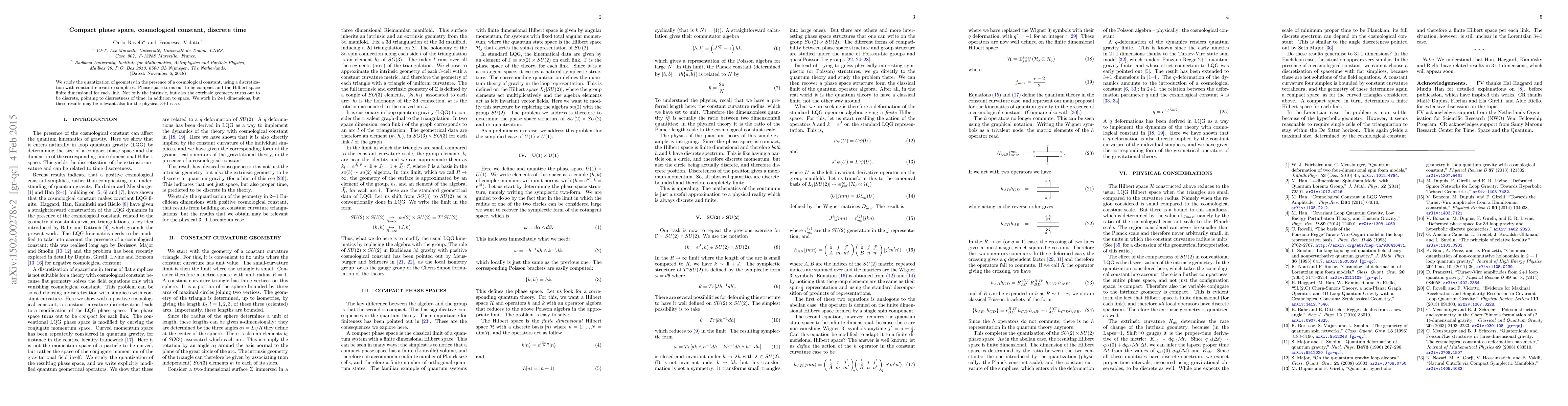 This paper quantizes geometry in 2+1 dimensions with a cosmological constant using constant-curvature simplices, revealing a compact phase space and finite-dimensional Hilbert space. It suggests that both intrinsic and extrinsic geometry are discrete, indicating a discrete nature of time in addition to space.