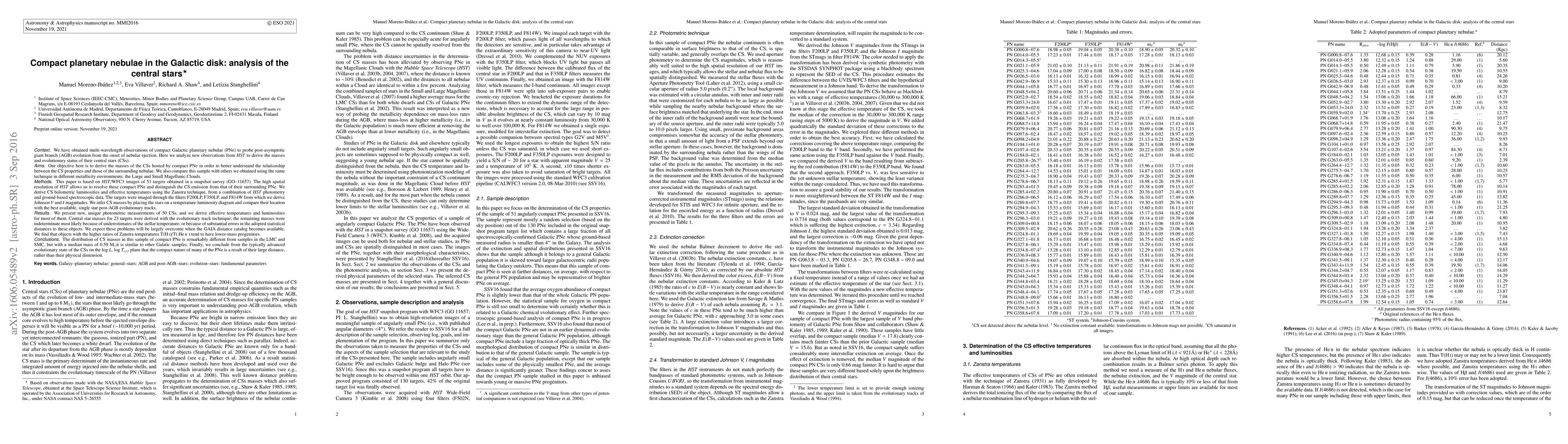 We have obtained multi-wavelength observations of compact Galactic planetary nebulae (PNe) to probe post-Asymptotic Giant Branch (AGB) evolution from the onset of nebular ejection. We analyze new observations from HST to derive the masses and evolutionary status of their central stars (CSs) in order to better understand the relationship between the CS properties and those of the surrounding nebulae. We also compare this sample with others we obtained using the same technique in different metallicity environments: the Large and Small Magellanic Clouds. We work with HST/WFC3 images of 51 targets obtained in a snapshot survey (GO-11657). The high spatial resolution of HST allows us to resolve these compact PNe and distinguish the CS emission from that of their surrounding PNe. The targets were imaged through the filters F200LP, F350LP, and F814W from which we derive Johnson V and I magnitudes. We derive CS bolometric luminosities and effective temperatures using the Zanstra technique, from a combination of HST photometry and ground-based spectroscopic data. We present new unique photometric measurements of 50 CSs, and derived effective temperatures and luminosities for most of them. Central star masses for 23 targets were derived by placing the stars on a temperature-luminosity diagram and compare their location with the best available single star post-AGB evolutionary tracks, the remaining masses were indeterminate most likely because of underestimates of the stellar temperature, or because of substantial errors in the adopted statistical distances to these objects. The distribution of CS masses in the sample of compact PNe is different than sample in the LMC and SMC, but with a median mass of 0.59 solar masses it is similar to other Galactic samples. We conclude that the compact nature of many of the PNe is a result of their large distance, rather than their physical dimension.