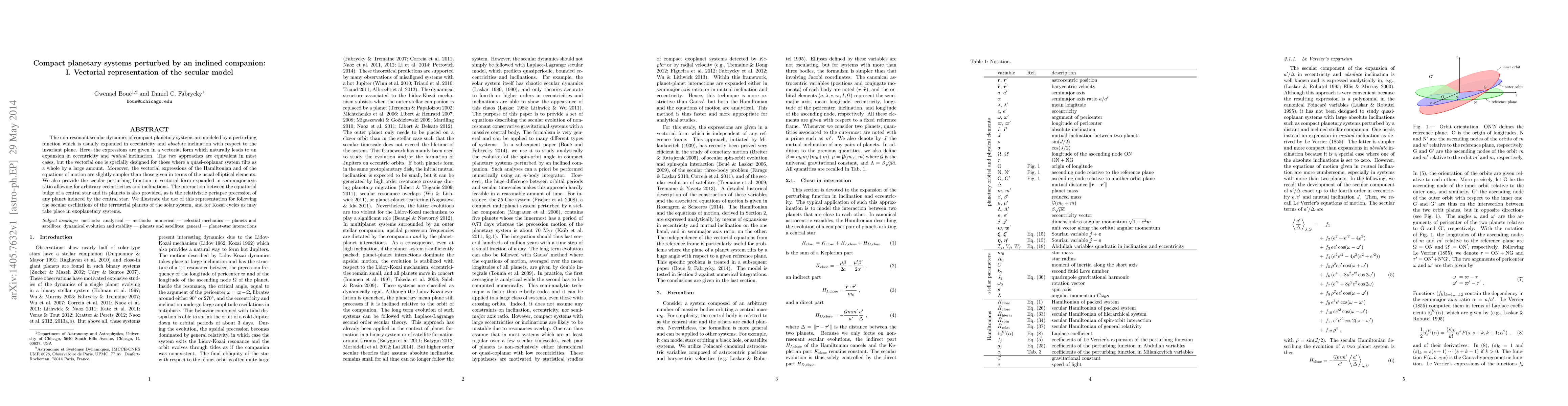 The non-resonant secular dynamics of compact planetary systems are modeled by a perturbing function which is usually expanded in eccentricity and absolute inclination with respect to the invariant plane. Here, the expressions are given in a vectorial form which naturally leads to an expansion in eccentricity and mutual inclination. The two approaches are equivalent in most cases, but the vectorial one is specially designed for those where a quasi-coplanar system tilts as a whole by a large amount. Moreover, the vectorial expressions of the Hamiltonian and of the equations of motion are slightly simpler than those given in terms of the usual elliptical elements. We also provide the secular perturbing function in vectorial form expanded in semimajor axis ratio allowing for arbitrary eccentricities and inclinations. The interaction between the equatorial bulge of a central star and its planets is also provided, as is the relativistic periapse precession of any planet induced by the central star. We illustrate the use of this representation for following the secular oscillations of the terrestrial planets of the solar system, and for Kozai cycles as may take place in exoplanetary systems.