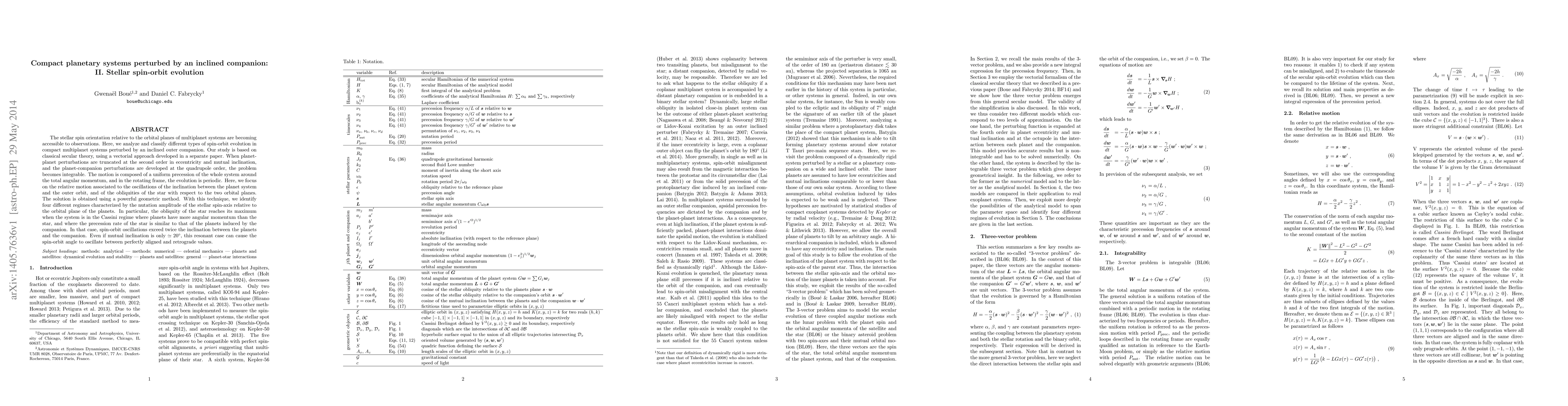 The stellar spin orientation relative to the orbital planes of multiplanet systems are becoming accessible to observations. Here, we analyze and classify different types of spin-orbit evolution in compact multiplanet systems perturbed by an inclined outer companion. Our study is based on classical secular theory, using a vectorial approach developed in a separate paper. When planet-planet perturbations are truncated at the second order in eccentricity and mutual inclination, and the planet-companion perturbations are developed at the quadrupole order, the problem becomes integrable. The motion is composed of a uniform precession of the whole system around the total angular momentum, and in the rotating frame, the evolution is periodic. Here, we focus on the relative motion associated to the oscillations of the inclination between the planet system and the outer orbit, and of the obliquities of the star with respect to the two orbital planes. The solution is obtained using a powerful geometric method. With this technique, we identify four different regimes characterized by the nutation amplitude of the stellar spin-axis relative to the orbital plane of the planets. In particular, the obliquity of the star reaches its maximum when the system is in the Cassini regime where planets have more angular momentum than the star, and where the precession rate of the star is similar to that of the planets induced by the companion. In that case, spin-orbit oscillations exceed twice the inclination between the planets and the companion. Even if mutual inclination is only ~ 20 deg, this resonant case can cause the spin-orbit angle to oscillate between perfectly aligned and retrograde values.