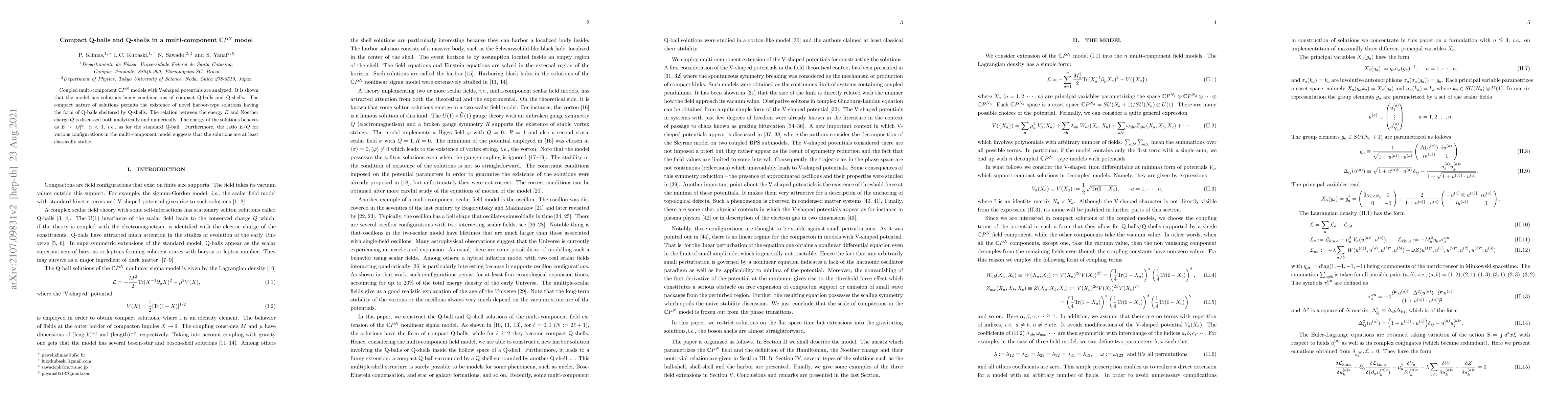 This paper investigates coupled multi-component $\mathbb{C}P^N$ models with V-shaped potentials, revealing solutions that are combinations of compact Q-balls and Q-shells, including novel harbor-type solutions. The energy-charge relation $E\sim |Q|^\alpha$ ($\alpha<1$) suggests classical stability for these configurations.