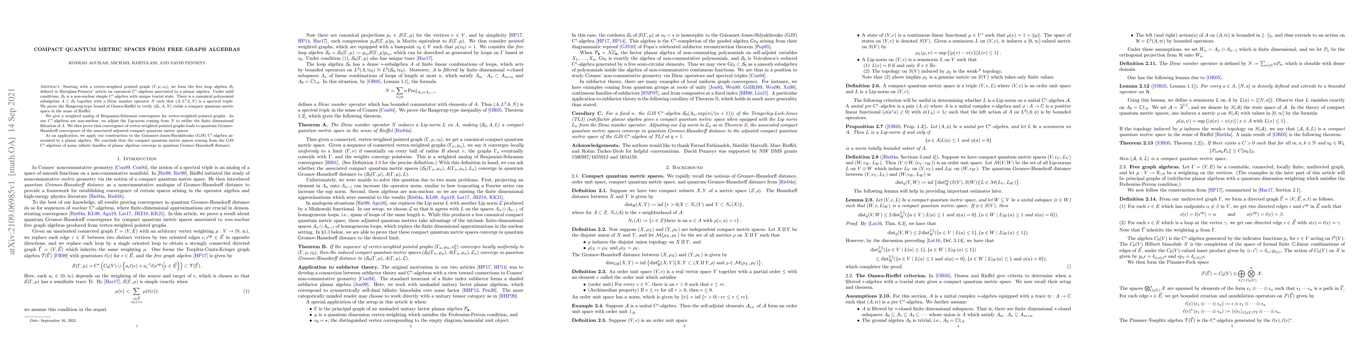 This paper constructs compact quantum metric spaces from free graph algebras, showing that vertex-weighted pointed graphs converge to these spaces under a weighted analog of Benjamini-Schramm convergence. The study applies to Guionnet-Jones-Shyakhtenko $\rm C^*$-algebras, demonstrating their convergence in quantum Gromov-Hausdorff distance.
