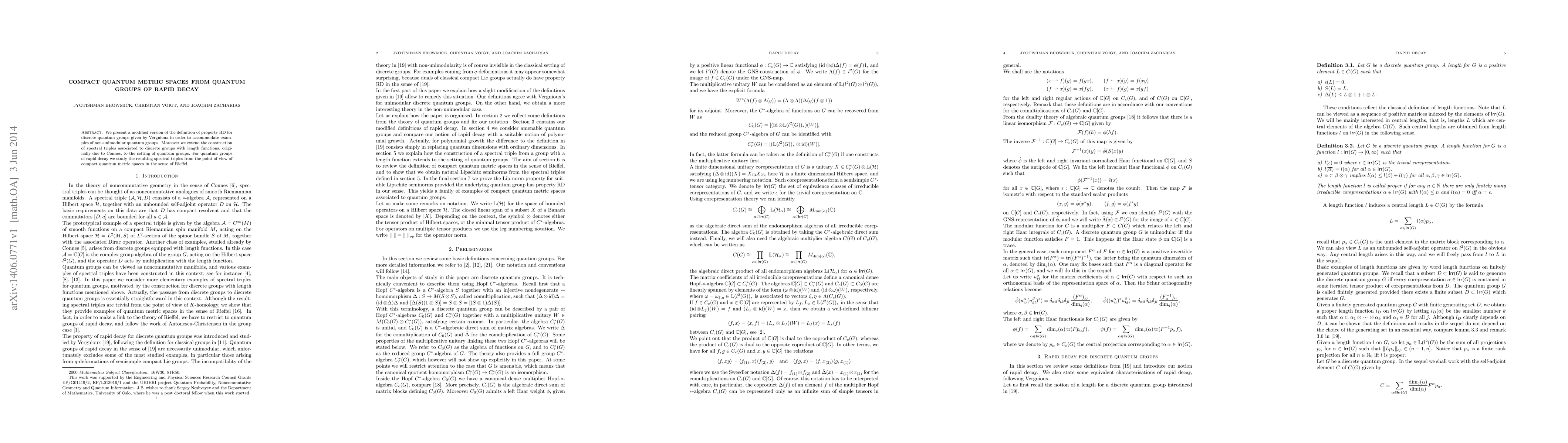 This paper modifies Vergnioux's definition of property RD for non-unimodular quantum groups and extends Connes' spectral triples construction to quantum groups. It explores the resulting spectral triples as compact quantum metric spaces in the context of Rieffel's theory.