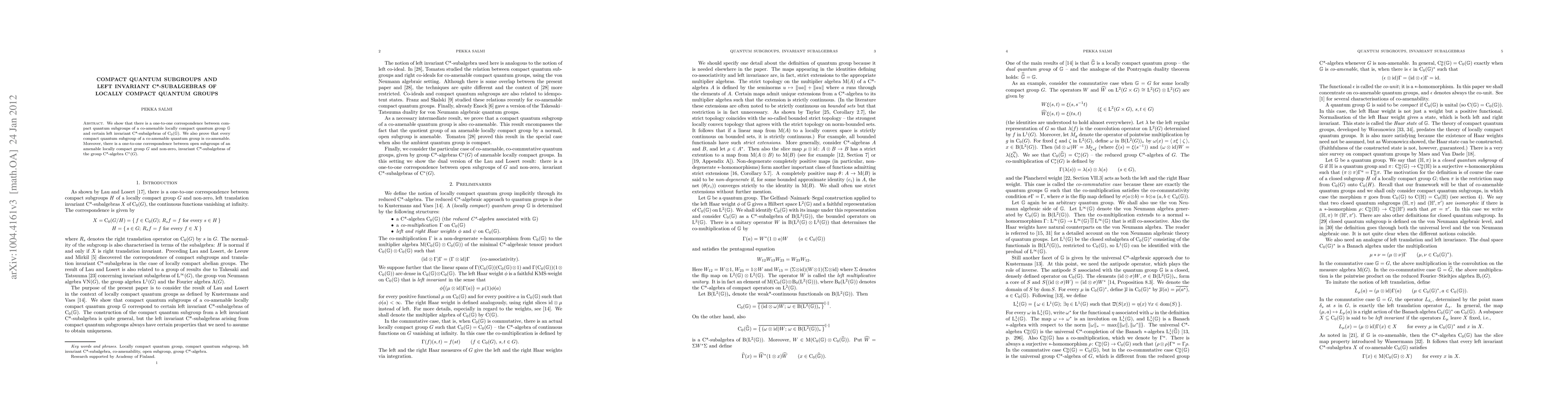This paper establishes a one-to-one correspondence between compact quantum subgroups of a co-amenable locally compact quantum group and specific left invariant C*-subalgebras. It also proves that every compact quantum subgroup in such a quantum group is co-amenable.