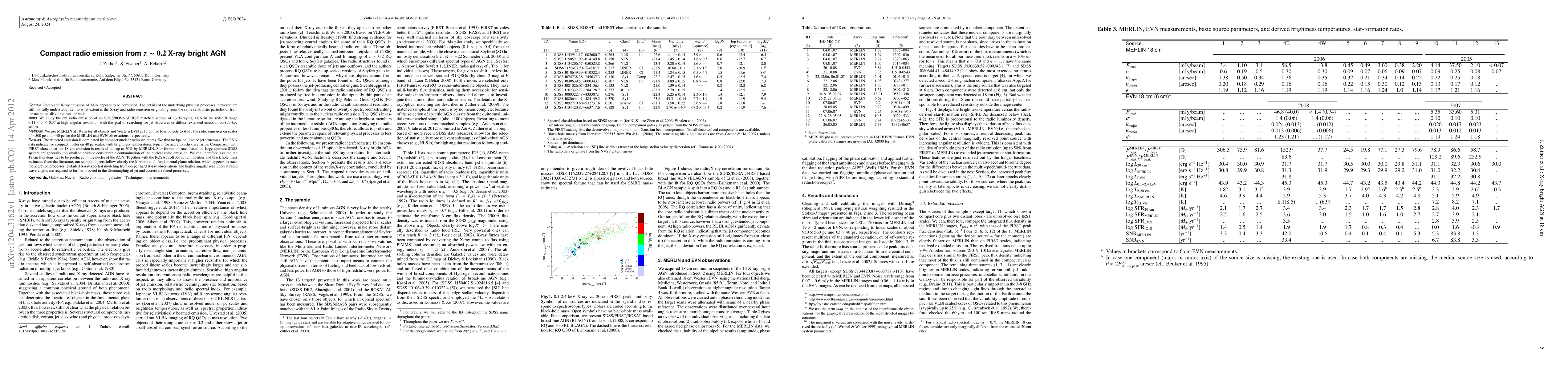 Radio and X-ray emission of AGN appears to be correlated. The details of the underlying physical processes, however, are still not fully understood, i.e., to what extent is the X-ray and radio emission originating from the same relativistic particles or from the accretion-disk or corona or both. We study the cm radio emission of an SDSS/ROSAT/FIRST matched sample of 13 X-raying AGN in the redshift range 0.11< z < 0.37 at high angular resolution with the goal of searching for jet structures or diffuse, extended emission on sub-kpc scales. We use MERLIN at 18 cm for all objects and Western EVN at 18 cm for four objects to study the radio emission on scales of ~500 pc and ~40 pc for the MERLIN and EVN observations, respectively. The detected emission is dominated by compact nuclear radio structures. We find no kpc collimated jet structures. The EVN data indicate for compact nuclei on 40 pc scales, with brightness temperatures typical for accretion-disk scenarios. Comparison with FIRST shows that the 18 cm emission is resolved out up to 50% by MERLIN. Star-formation rates based on large aperture SDSS spectra are generally too small to produce considerable contamination of the nuclear radio emission. We can, therefore, assume the 18 cm flux densities to be produced in the nuclei of the AGN. Together with the ROSAT soft X-ray luminosities and black hole mass estimates from the literature, our sample objects follow closely the Merloni et al. (2003) fundamental plane relation, which appears to trace the accretion processes. Detailed X-ray spectral modeling from deeper hard X-ray observations and higher angular resolution at radio wavelengths are required to further proceed in the disentangling of jet and accretion related processes.