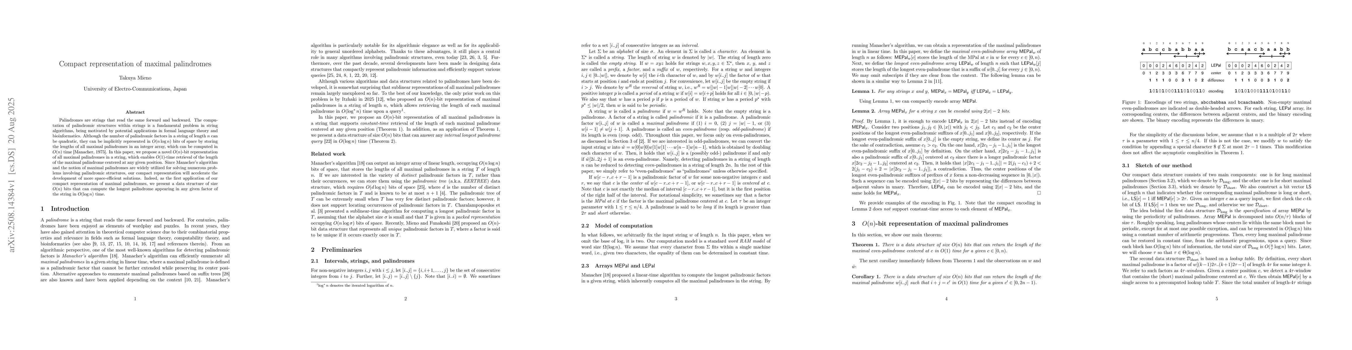 The paper introduces a novel compact representation of maximal palindromes, enabling efficient retrieval and computation of palindromic lengths in strings.