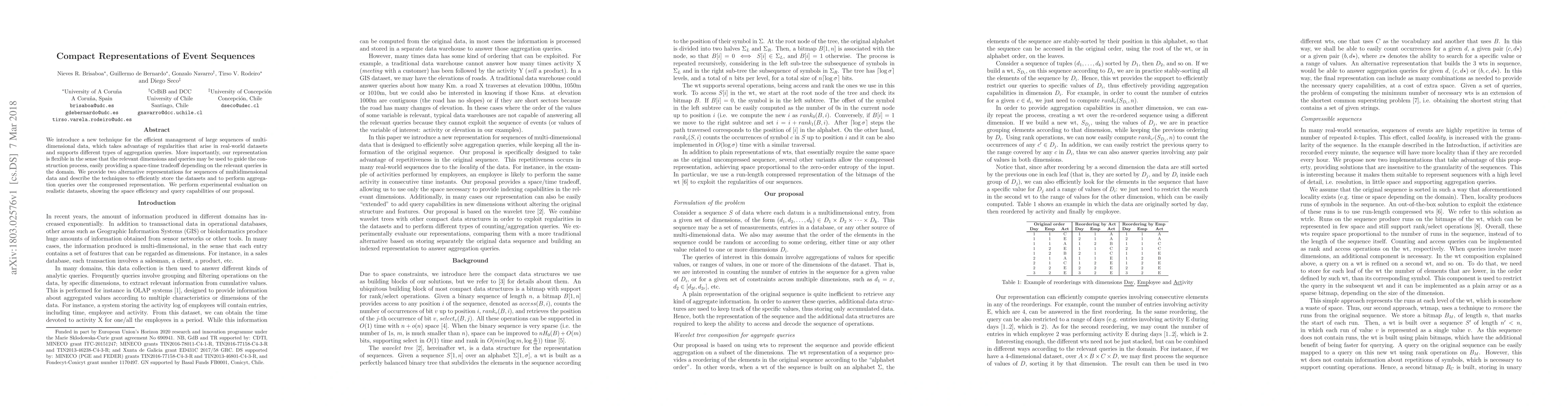We introduce a new technique for the efficient management of large sequences of multidimensional data, which takes advantage of regularities that arise in real-world datasets and supports different types of aggregation queries. More importantly, our representation is flexible in the sense that the relevant dimensions and queries may be used to guide the construction process, easily providing a space-time tradeoff depending on the relevant queries in the domain. We provide two alternative representations for sequences of multidimensional data and describe the techniques to efficiently store the datasets and to perform aggregation queries over the compressed representation. We perform experimental evaluation on realistic datasets, showing the space efficiency and query capabilities of our proposal.