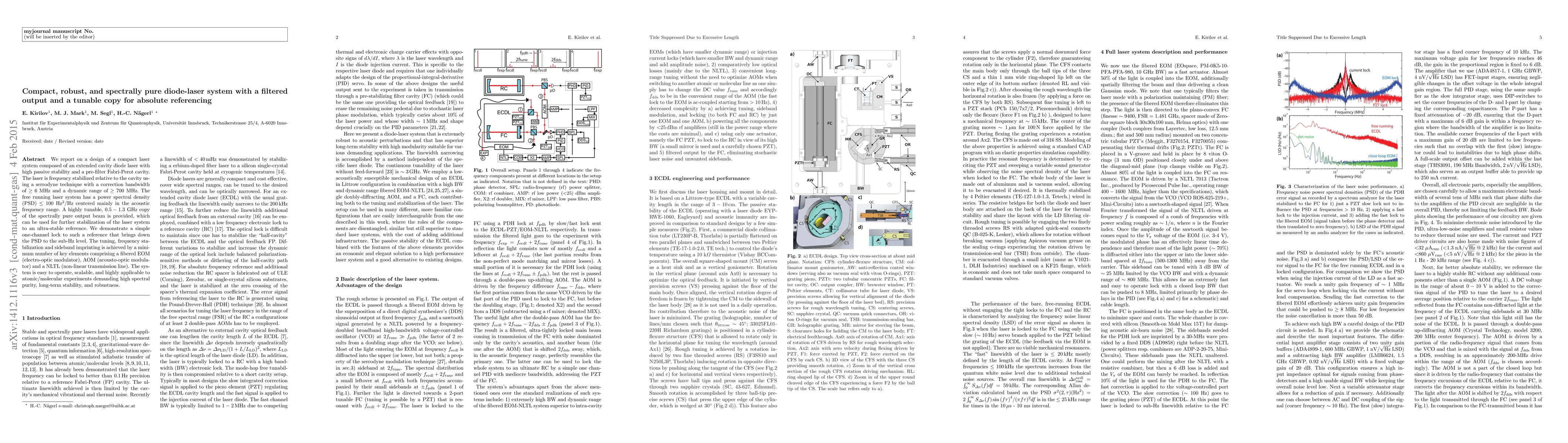 This paper presents a compact, stable diode-laser system with a filtered output, employing a serrodyne technique for frequency stabilization and a tunable copy for absolute referencing, achieving sub-Hz power spectral density. The design includes minimal components like an EOM, AOM, and NLTL, making it scalable and suitable for high-precision atomic/molecular experiments.