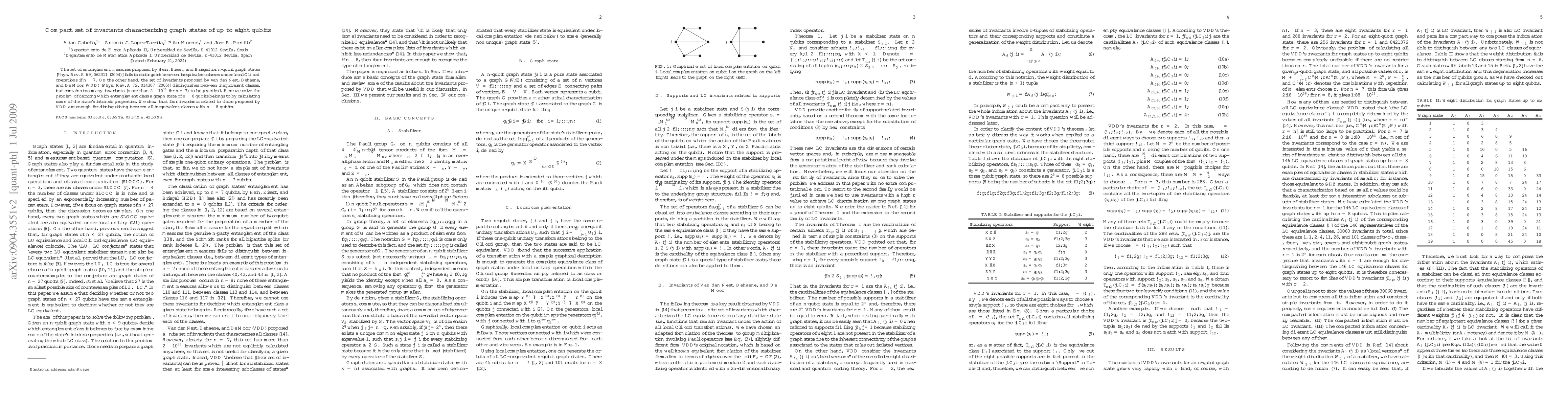 The set of entanglement measures proposed by Hein, Eisert, and Briegel for n-qubit graph states [Phys. Rev. A 69, 062311 (2004)] fails to distinguish between inequivalent classes under local Clifford operations if n > 6. On the other hand, the set of invariants proposed by van den Nest, Dehaene, and De Moor (VDD) [Phys. Rev. A 72, 014307 (2005)] distinguishes between inequivalent classes, but contains too many invariants (more than 2 10^{36} for n=7) to be practical. Here we solve the problem of deciding which entanglement class a graph state of n < 9 qubits belongs to by calculating some of the state's intrinsic properties. We show that four invariants related to those proposed by VDD are enough for distinguishing between all inequivalent classes with n < 9 qubits.