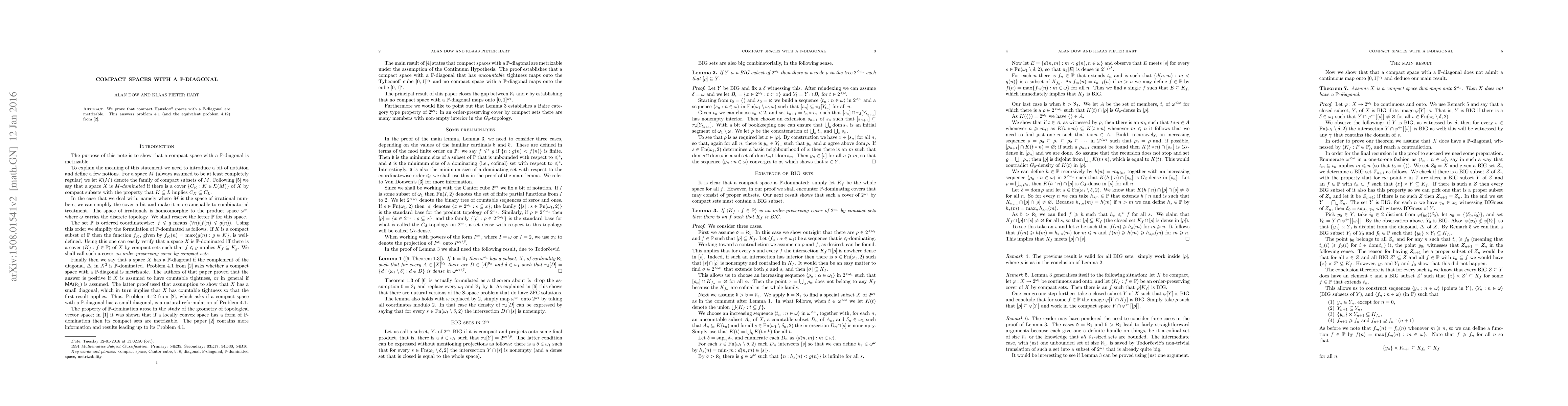 Summary: This paper demonstrates that compact Hausdorff spaces possessing a $\mathbb{P}$-diagonal property are metrizable, providing a significant result in topology.