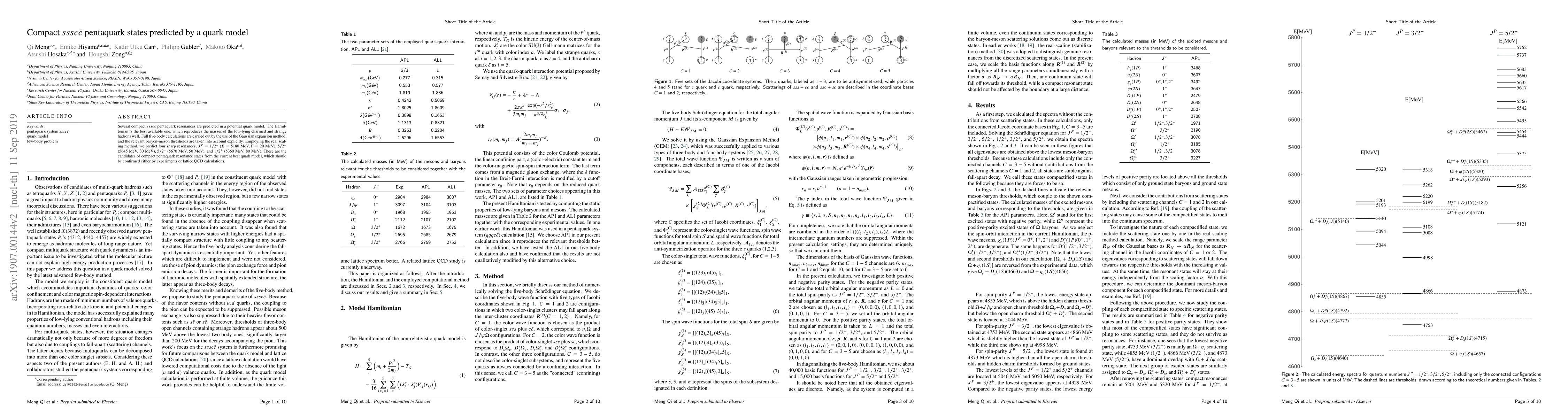 Several compact $sssc\bar c$ pentaquark resonances are predicted in a potential quark model. The Hamiltonian is the best available one, which reproduces the masses of the low-lying charmed and strange hadrons well. Full five-body calculations are carried out by the use of the Gaussian expansion method, and the relevant baryon-meson thresholds are taken into account explicitly. Employing the real scaling method, we predict four sharp resonances, $J^P=1/2^-$ ($E=5180$ MeV, $\Gamma=20$ MeV), $5/2^-$ (5645 MeV, 30 MeV), $5/2^-$ (5670 MeV, 50 MeV), and $1/2^+$ (5360 MeV, 80 MeV). These are the candidates of compact pentaquark resonance states from the current best quark model, which should be confirmed either by experiments or lattice QCD calculations.