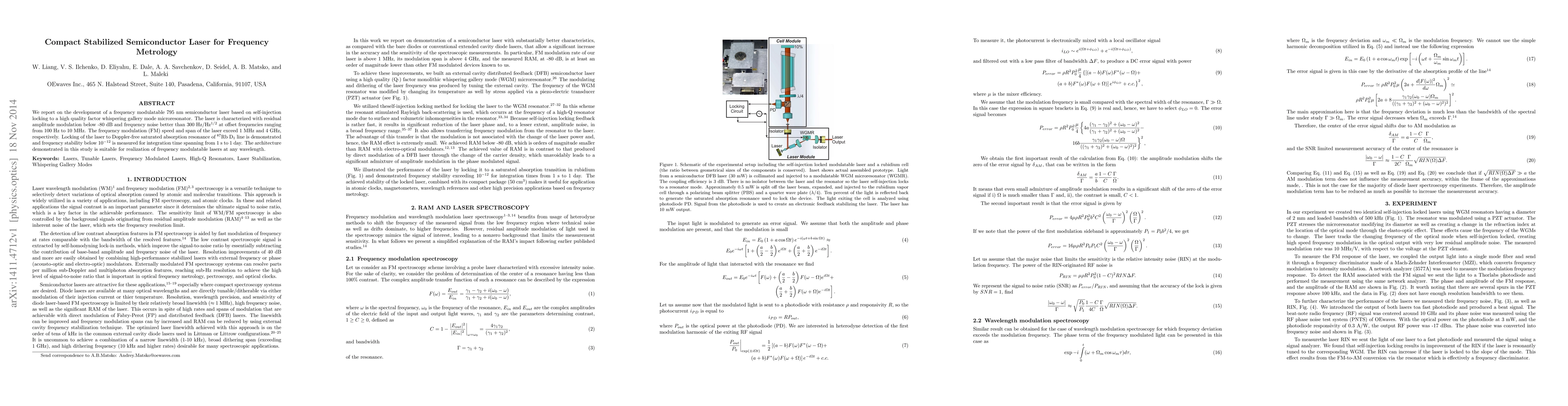 We report on the development of a frequency modulatable 795 nm semiconductor laser based on self-injection locking to a high quality factor whispering gallery mode microresonator. The laser is characterized with residual amplitude modulation below -80 dB and frequency noise better than 300 Hz/Hz^(1/2) at offset frequencies ranging from 100 Hz to 10 MHz. The frequency modulation (FM) speed and span of the laser exceed 1 MHz and 4 GHz, respectively. Locking of the laser to Doppler-free saturated absorption resonance of 87Rb D1 line is demonstrated and frequency stability below 10^(-12) is measured for integration time spanning from 1 s to 1 day. The architecture demonstrated in this study is suitable for realization of frequency modulatable lasers at any wavelength.