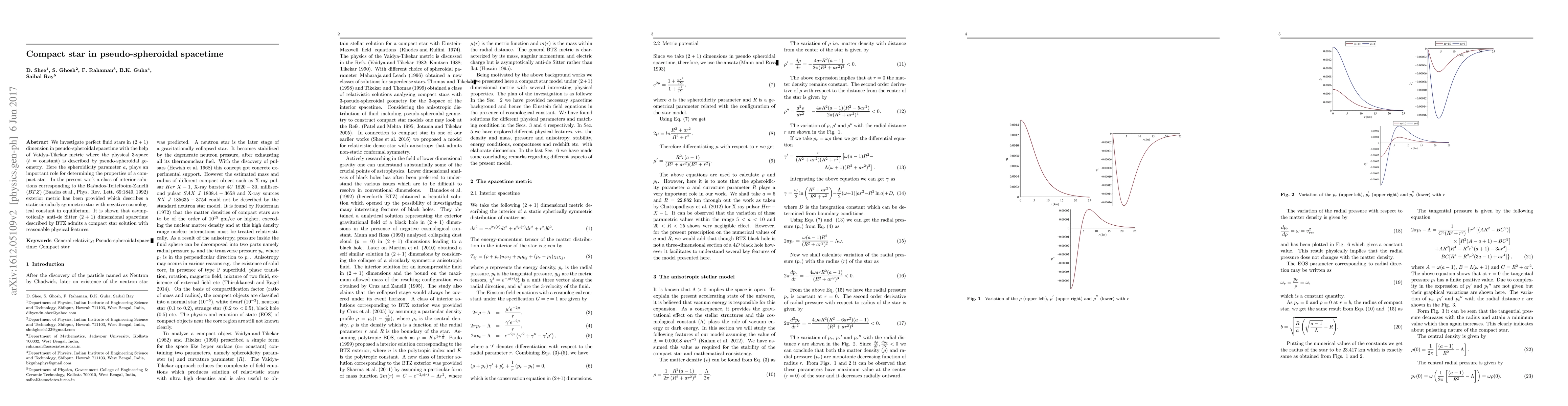 We investigate perfect fluid stars in $(2+1)$ dimension in pseudo spheroidal spacetime with the help of Vaidya-Tikekar metric where the physical $3$-space ($t=$ constant) is described by pseudo-spheroidal geometry. Here the spheroidicity parameter $a$, plays an important role for determining the properties of a compact star. In the present work a class of interior solutions corresponding to the Ba$\tilde{n}$ados-Teitelboim-Zanelli $(BTZ)$ (Ba\~nados et al., Phys. Rev. Lett. 69:1849, 1992) exterior metric has been provided which describes a static circularly symmetric star with negative cosmological constant in equilibrium. It is shown that asymptotically anti-de Sitter $(2+1)$ dimensional spacetime described by BTZ admits a compact star solution with reasonable physical features.