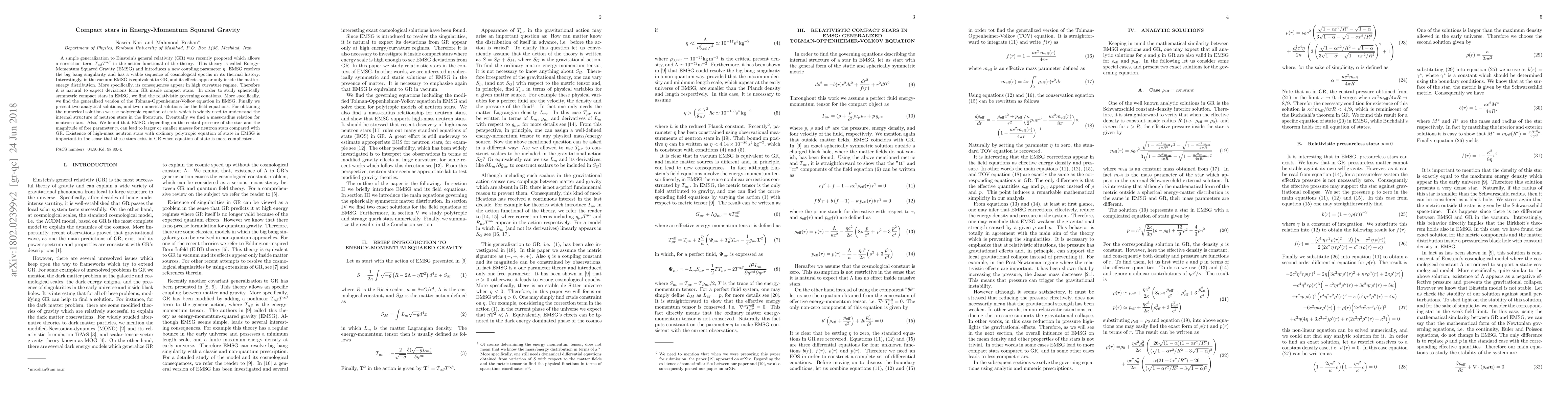 Researchers studied compact stars in Energy-Momentum Squared Gravity (EMSG), a modified theory of general relativity, and found that it can produce larger or smaller masses for neutron stars than GR, depending on the central pressure and free parameter η.