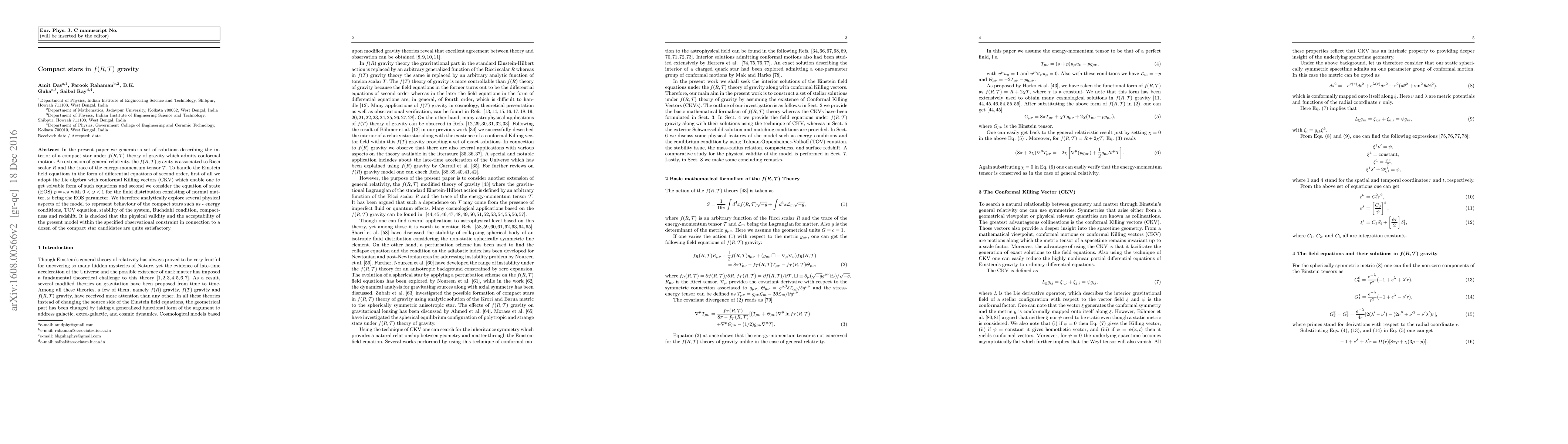 In the present paper we generate a set of solutions describing the interior of a compact star under $f(R,T)$ theory of gravity which admits conformal motion. We consider the equation of state (EOS) $p=\omega\rho$ with $0<\omega<1$ for the fluid distribution consisting normal matter, $\omega$ being the EOS parameter. We therefore explore several aspects of the model analytically along with graphical representations to check the physical validity as well as acceptability of it within specified observational constraint in connection to a dozen of the compact star candidates. It is shown from the presented model that these objects are nothing but radiating compact stars.