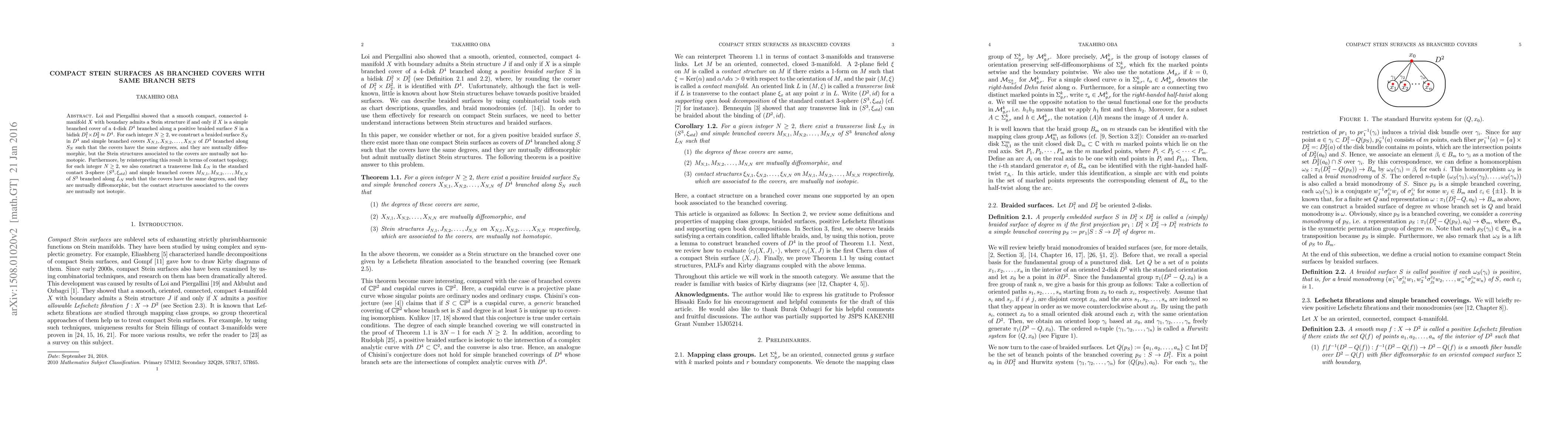 The paper constructs braided surfaces and simple branched covers of 4-disks and 3-spheres, demonstrating the existence of Stein structures and contact structures that are not homotopic or isotopic, respectively.