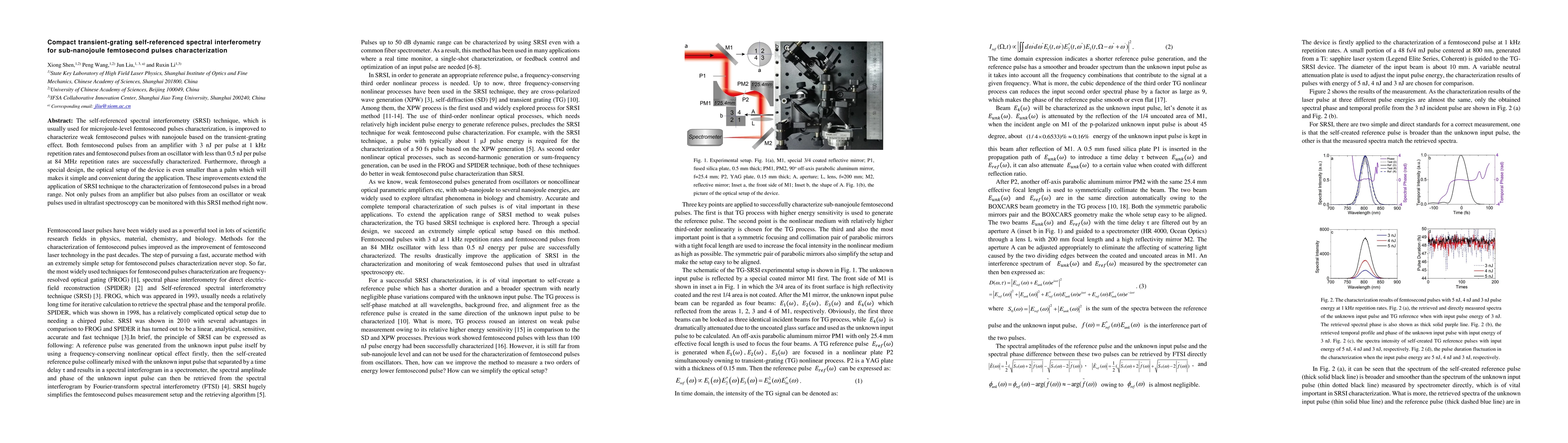 This paper presents an enhanced self-referenced spectral interferometry (SRSI) technique for characterizing femtosecond pulses as low as sub-nanojoule levels, utilizing a compact, transient-grating setup. The method successfully characterizes pulses from both an amplifier and an oscillator, extending the SRSI application to a broader range of ultrafast spectroscopy.