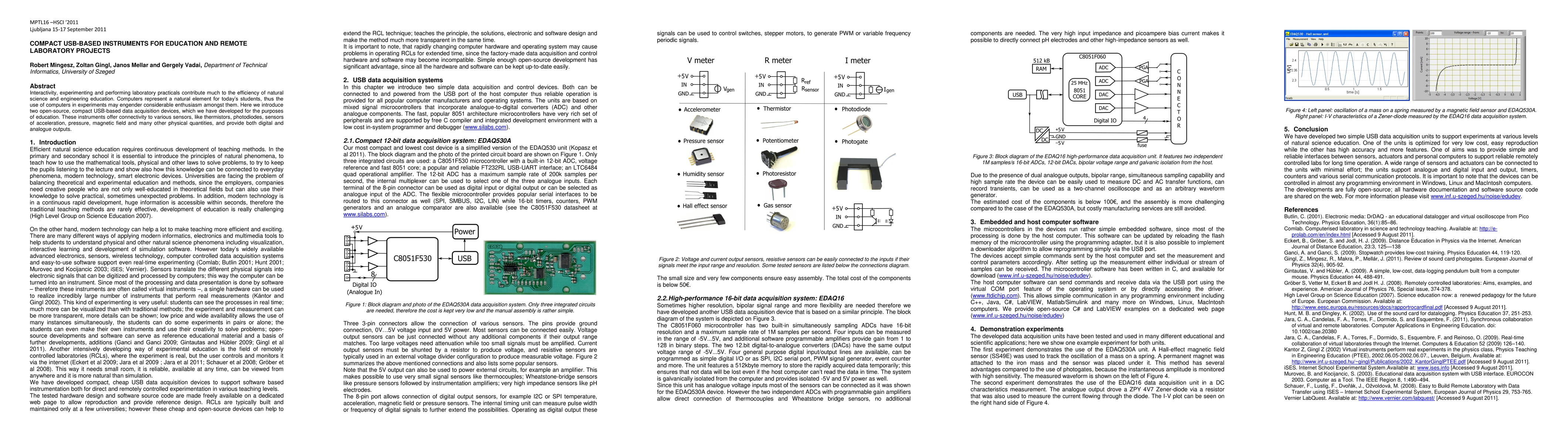 Interactivity, experimenting and performing laboratory practicals contribute much to the efficiency of natural science and engineering education. Computers represent a natural element for today's students, thus the use of computers in experiments may engender considerable enthusiasm amongst them. Here we introduce two open-source, compact USB-based data acquisition devices, which we have developed for the purposes of education. These instruments offer connectivity to various sensors, like thermistors, photodiodes, sensors of acceleration, pressure, magnetic field and many other physical quantities, and provide both digital and analogue outputs.