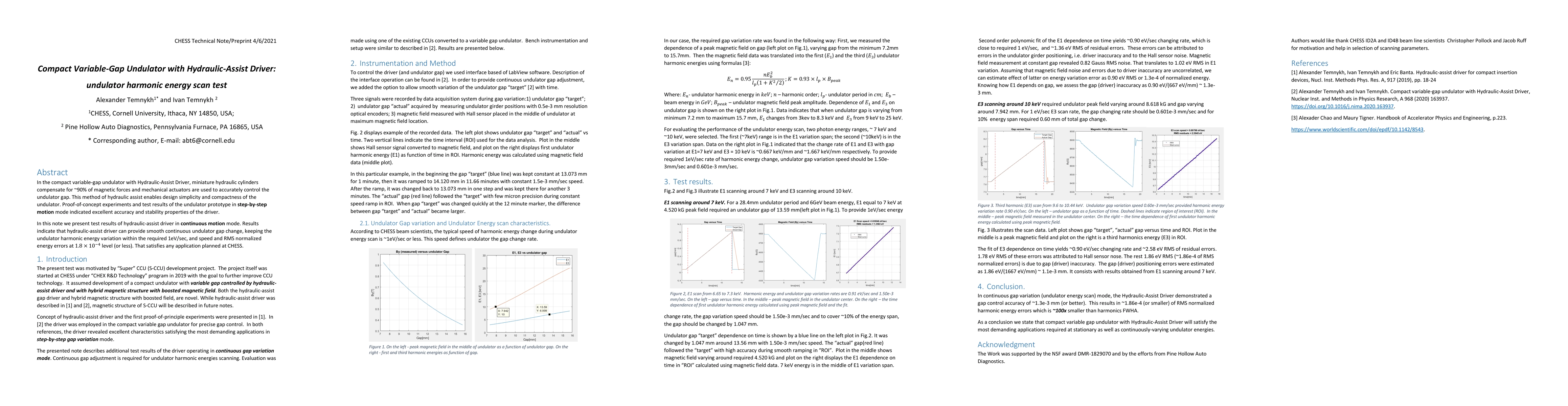 A compact undulator design uses hydraulic cylinders to compensate for 90% of magnetic forces, achieving smooth continuous gap changes with minimal harmonic energy variation. The system meets the requirements for CHESS applications with high accuracy and stability.