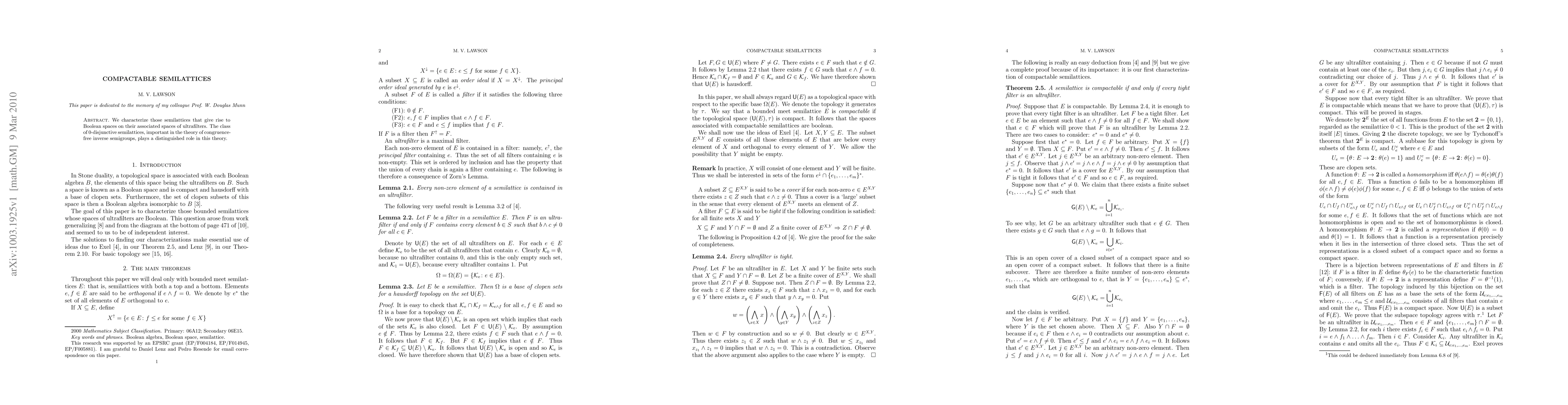 Summary: This paper characterizes semilattices that form Boolean spaces via their ultrafilters, focusing on 0-disjunctive semilattices which are significant in the theory of congruence-free inverse semigroups. The findings delineate the structural properties of these semilattices.