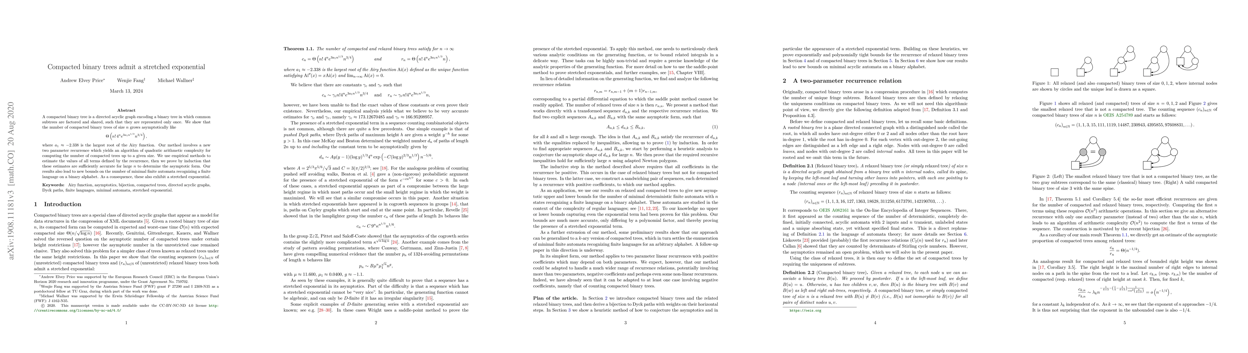 A compacted binary tree is a directed acyclic graph encoding a binary tree in which common subtrees are factored and shared, such that they are represented only once. We show that the number of compacted binary trees of size $n$ grows asymptotically like $$\Theta\left( n! \, 4^n e^{3a_1n^{1/3}} n^{3/4} \right),$$ where $a_1\approx-2.338$ is the largest root of the Airy function. Our method involves a new two parameter recurrence which yields an algorithm of quadratic arithmetic complexity. We use empirical methods to estimate the values of all terms defined by the recurrence, then we prove by induction that these estimates are sufficiently accurate for large $n$ to determine the asymptotic form. Our results also lead to new bounds on the number of minimal finite automata recognizing a finite language on a binary alphabet. As a consequence, these also exhibit a stretched exponential.