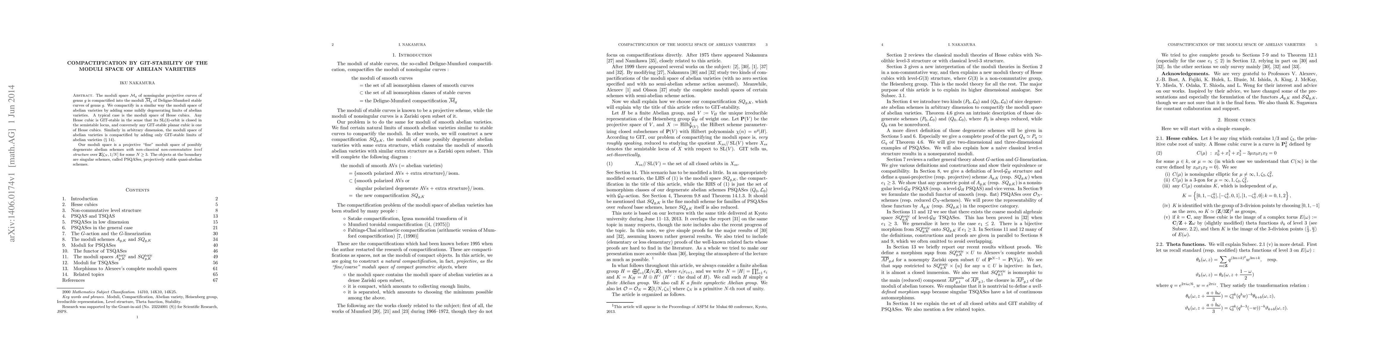 The moduli space $\cM_g$ of nonsingular projective curves of genus $g$ is compactified into the moduli $\bcM_g$ of Deligne-Mumford stable curves of genus $g$. We compactify in a similar way the moduli space of abelian varieties by adding some mildly degenerating limits of abelian varieties. A typical case is the moduli space of Hesse cubics. Any Hesse cubic is GIT-stable in the sense that its $\SL(3)$-orbit is closed in the semistable locus, and conversely any GIT-stable planar cubic is one of Hesse cubics. Similarly in arbitrary dimension, the moduli space of abelian varieties is compactified by adding only GIT-stable limits of abelian varieties. Our moduli space is a projective "fine" moduli space of possibly degenerate abelian schemes {\it with non-classical non-commutative level structure} over $\bZ[\zeta_{N},1/N]$ for some $N\geq 3$. The objects at the boundary are singular schemes, called PSQASes, projectively stable quasi-abelian schemes.