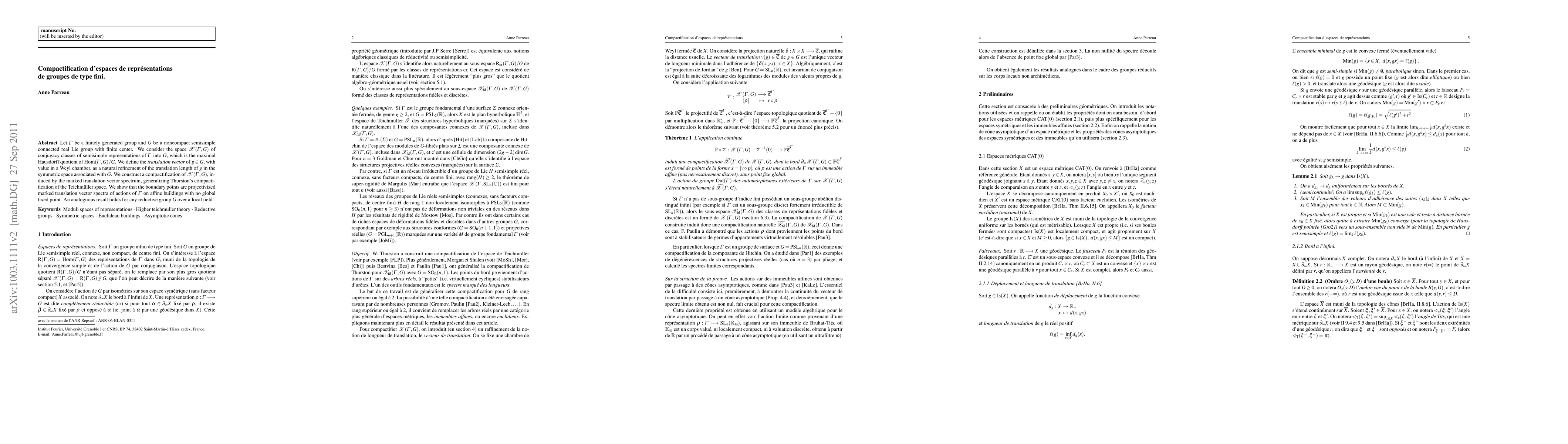 Let $\Gamma$ be a finitely generated group and $G$ be a noncompact semisimple connected real Lie group with finite center. We consider the space $\mathcal X$ of conjugacy classes of reductive representations of $\Gamma$ into $G$. We define the {\it translation vector} of an element $g$ in $G$, with values in a Weyl chamber, as a refinement of the translation length in the associated symmetric space. We construct a compactification of $\mathcal X$, induced by the marked translation vector spectrum, generalizing Thurston's compactification of the Teichm\"uller space. We show that the boundary points are projectivized marked translation vector spectra of actions of $\Gamma$ on affine buildings with no global fixed point. An analoguous result holds for any reductive group $G$ over a local field.