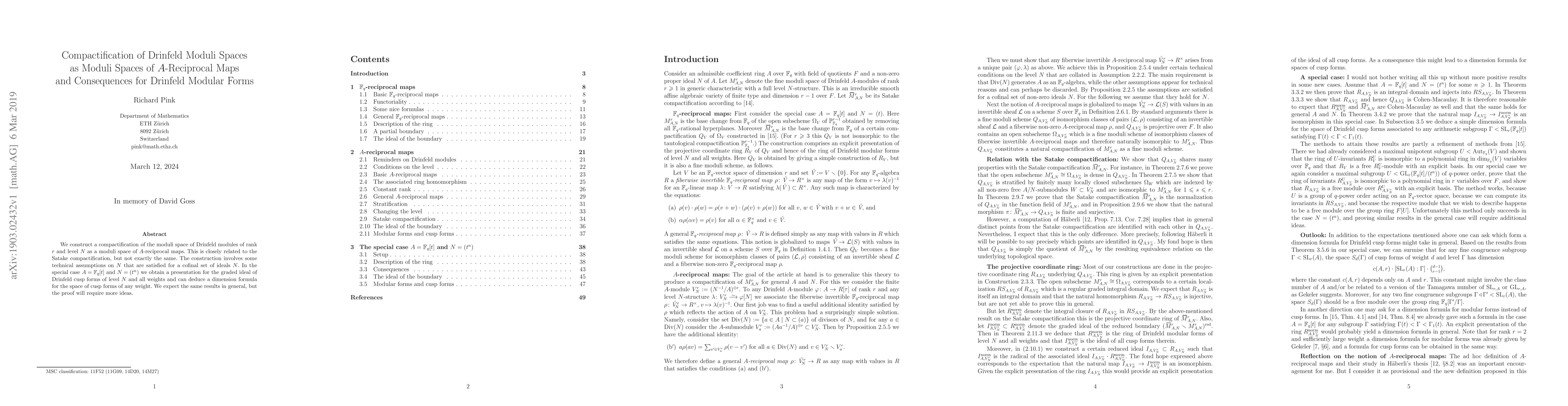 This paper constructs a compactification of the moduli space of Drinfeld modules using $A$-reciprocal maps, providing a new perspective on Drinfeld modular forms. It also presents a dimension formula for Drinfeld cusp forms for specific cases and suggests similar results may hold more generally.