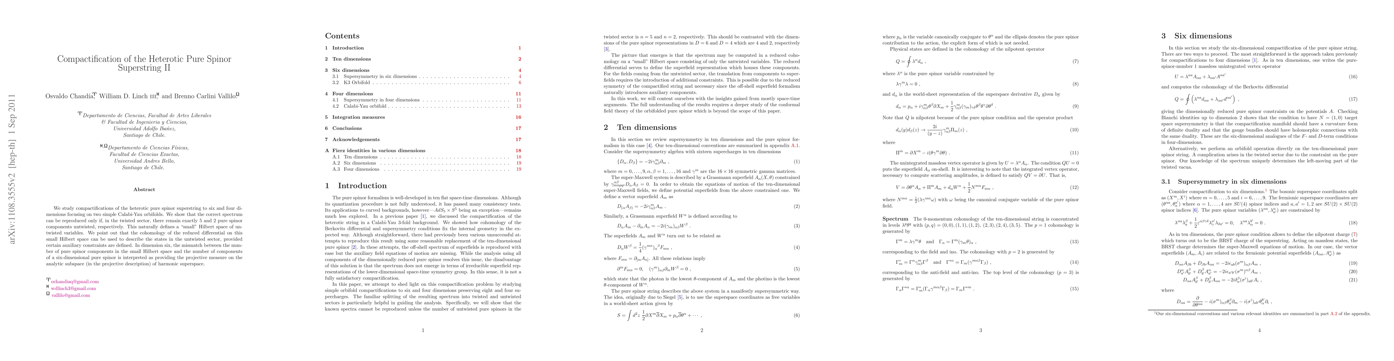 We study compactifications of the heterotic pure spinor superstring to six and four dimensions focusing on two simple Calabi-Yau orbifolds. We show that the correct spectrum can be reproduced only if, in the twisted sector, there remain exactly 5 and 2 pure spinor components untwisted, respectively. This naturally defines a "small" Hilbert space of untwisted variables. We point out that the cohomology of the reduced differential on this small Hilbert space can be used to describe the states in the untwisted sector, provided certain auxiliary constraints are defined. In dimension six, the mismatch between the number of pure spinor components in the small Hilbert space and the number of components of a six-dimensional pure spinor is interpreted as providing the projective measure on the analytic subspace (in the projective description) of harmonic superspace.