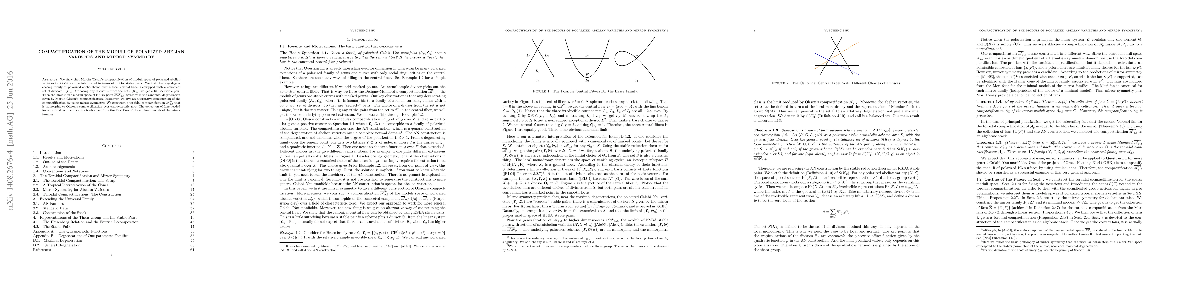 This paper demonstrates that Martin Olsson's compactification of the moduli space of polarized abelian varieties can be framed as KSBA stable pairs, and constructs an alternative compactification using mirror symmetry, showing it is isomorphic to Olsson's in characteristic zero.