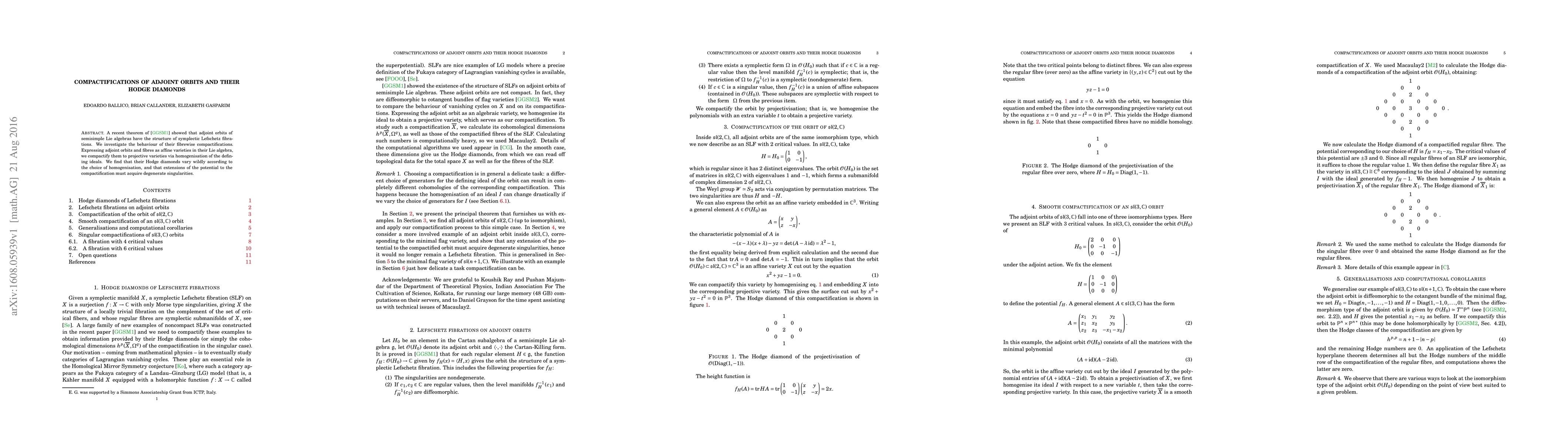 This research explores the compactification of adjoint orbits of semisimple Lie algebras, revealing varied Hodge diamond structures dependent on the chosen homogenisation method, and suggesting that extensions to compactifications may involve degenerate singularities.