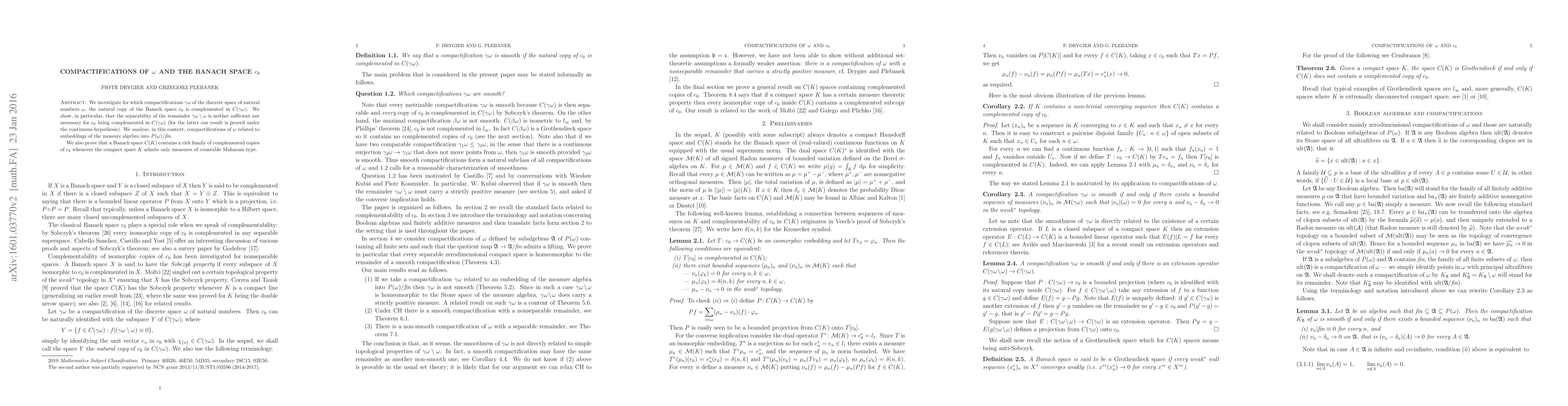 The paper investigates compactifications of the discrete space of natural numbers ω and their relationship with the Banach space c₀, focusing on when c₀ is complemented in C(γω).