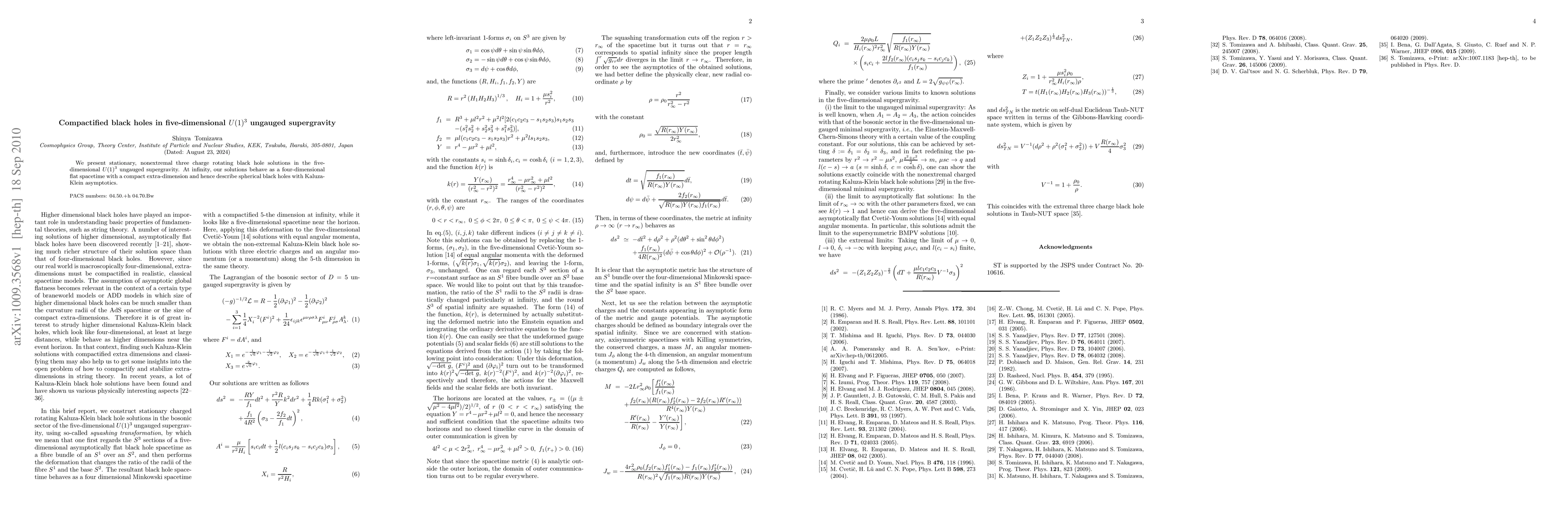 This paper introduces stationary, nonextremal rotating black hole solutions in five-dimensional U(1)³ ungauged supergravity, which exhibit four-dimensional flat spacetime behavior with a compact extra dimension, representing spherical black holes with Kaluza-Klein properties.