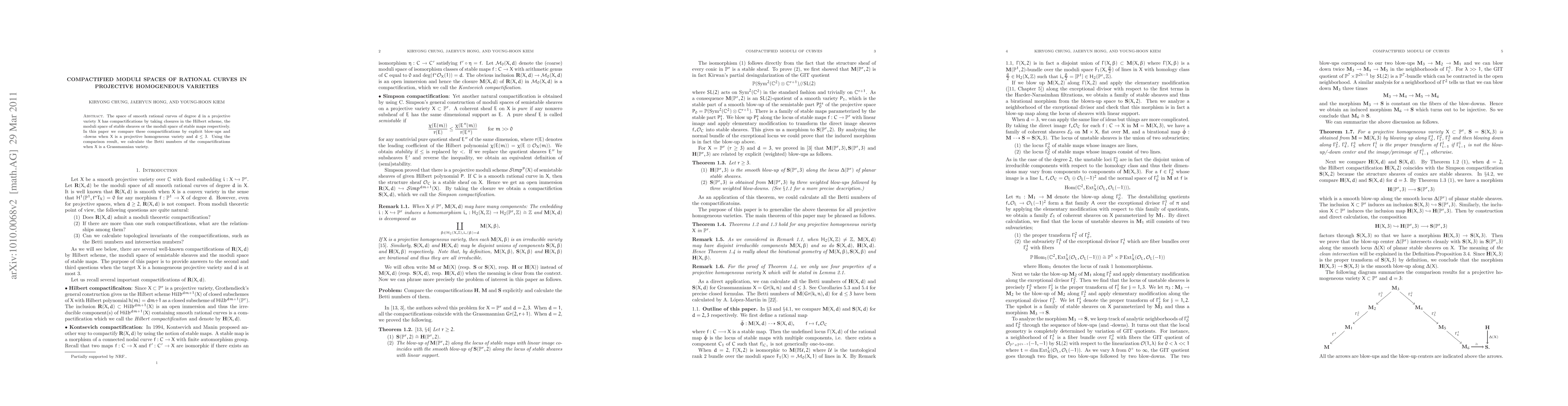 This paper compares compactifications of rational curves in projective homogeneous varieties, focusing on Grassmannian varieties for d = 3, using explicit blow-ups and downings to calculate Betti numbers.