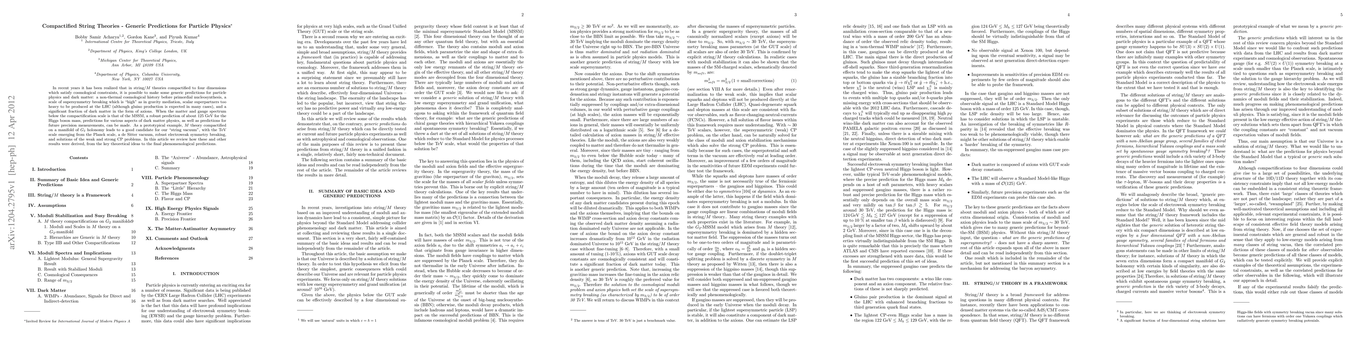 This paper reviews predictions from compactified string/$M$ theories for particle physics, including a non-thermal pre-nucleosynthesis history, high-scale gravity mediation, and axion dark matter. It highlights the MSSM spectrum and predicts a Higgs mass around 125 GeV, alongside implications for dark matter and precision measurements.