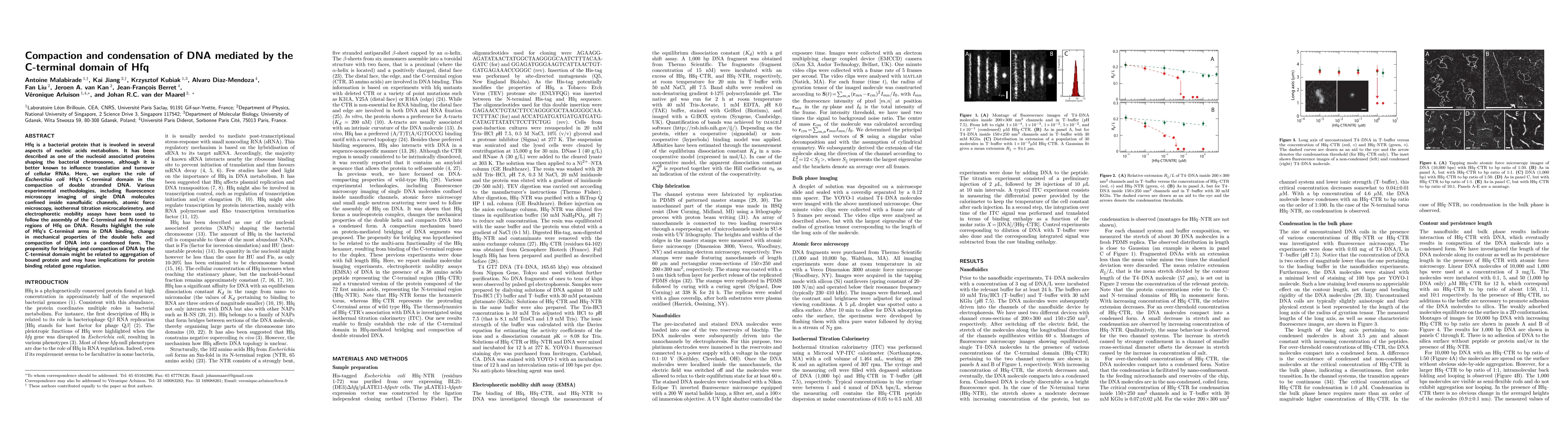 This paper investigates the role of Escherichia coli Hfq's C-terminal domain in compacting double-stranded DNA, using various experimental techniques. Results show that the C-terminal domain binds DNA, alters its mechanical properties, and condenses it, suggesting a potential link to gene regulation through protein aggregation.