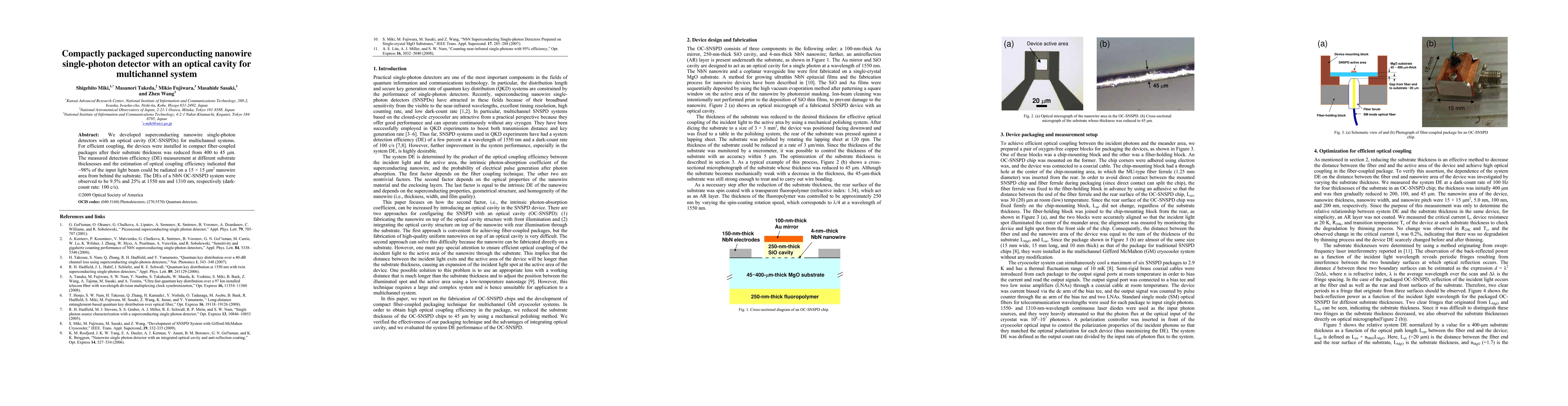 This paper presents compactly packaged superconducting nanowire single-photon detectors integrated with optical cavities for multichannel systems, achieving high detection efficiency of 9.5% and 25% at 1550 nm and 1310 nm, respectively, with minimal substrate thickness reduction.