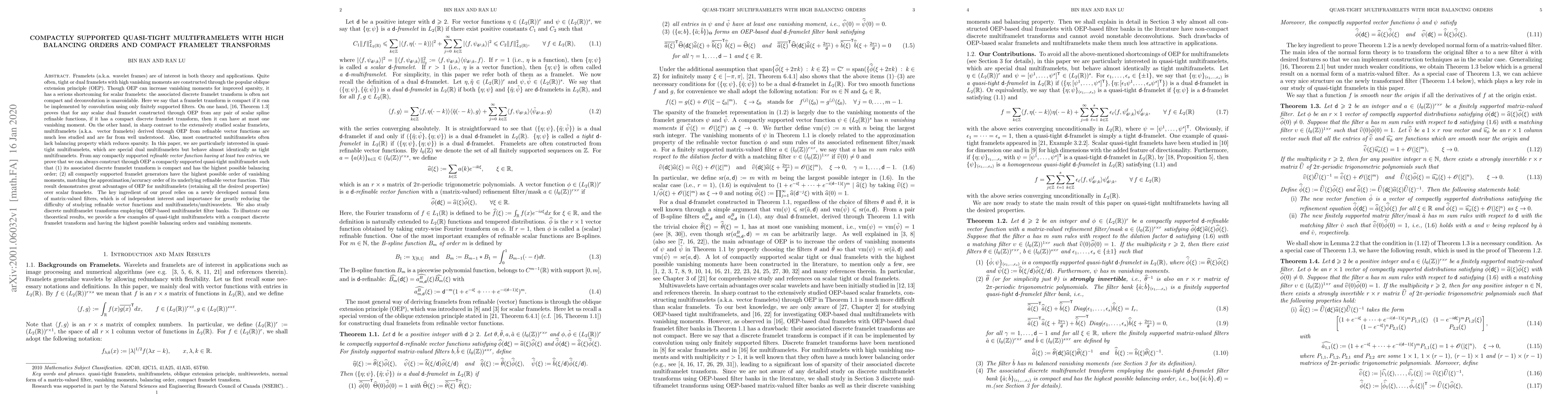 This paper constructs compactly supported quasi-tight multiframelets using the oblique extension principle (OEP) from refinable vector functions, ensuring compact framelet transforms and high balancing orders, while maintaining the highest possible order of vanishing moments and approximating the underlying functions accurately.