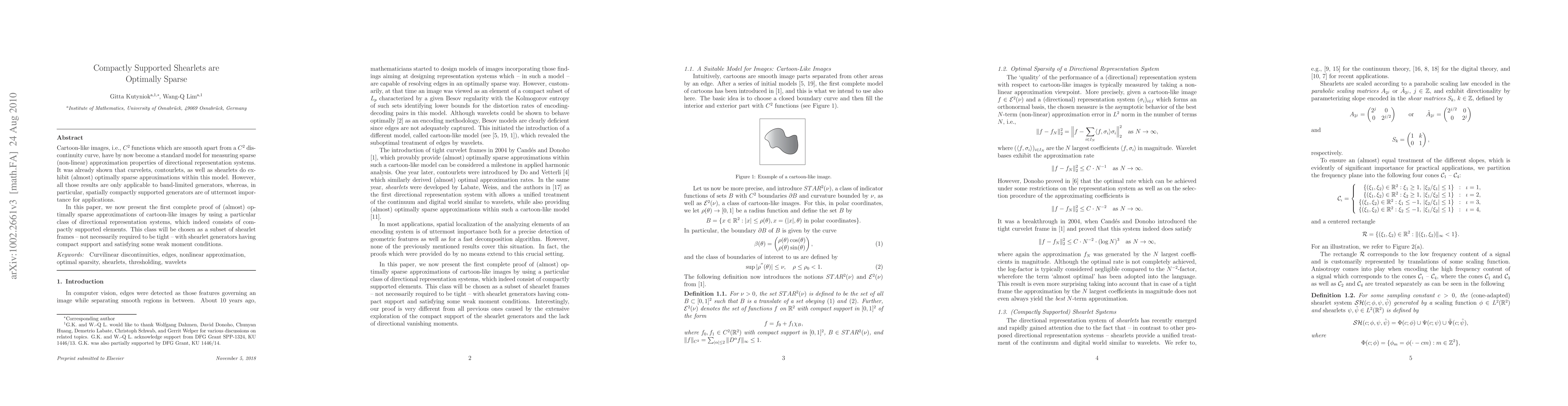 The paper introduces a novel class of compactly supported shearlet frames and proves their optimal sparse approximation properties for cartoon-like images.
