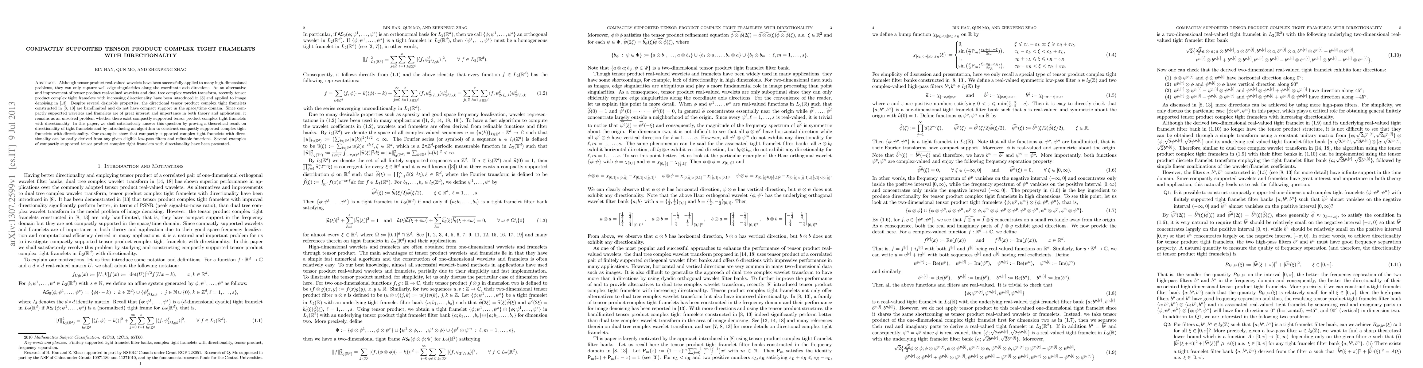 This paper addresses the challenge of constructing compactly supported tensor product complex tight framelets with directionality, proving their theoretical existence and presenting an algorithm for their construction. It demonstrates that such framelets can be derived from eligible low-pass filters and refinable functions, showcasing their potential in high-dimensional signal processing applications.