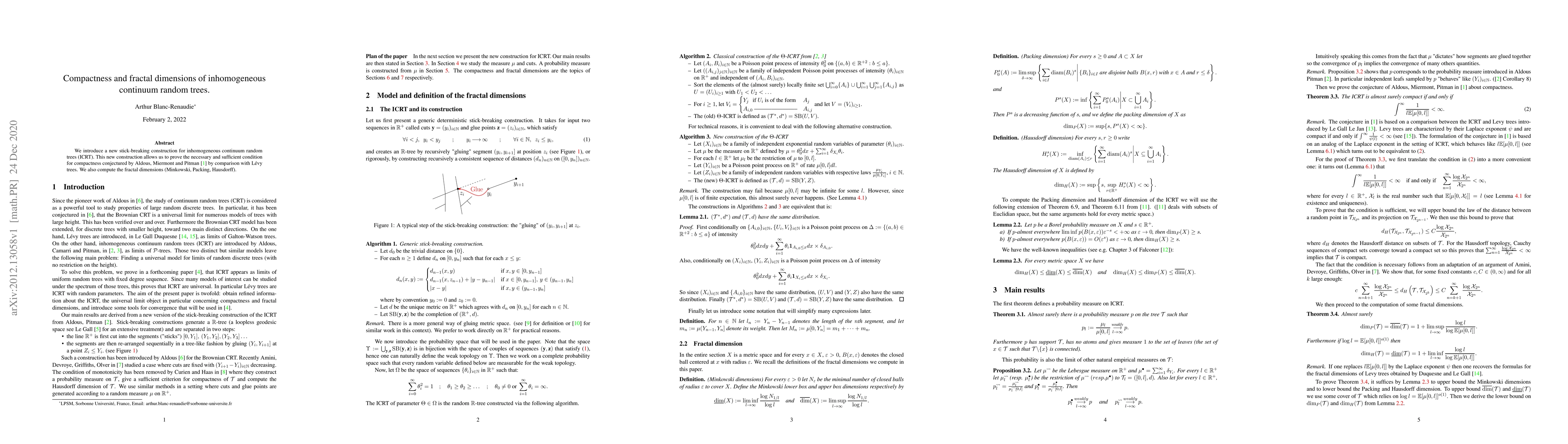 This paper introduces a new stick-breaking construction for inhomogeneous continuum random trees (ICRT) and proves the compactness conjecture using comparison with Lévy trees. It also computes the Minkowski, Packing, and Hausdorff fractal dimensions.