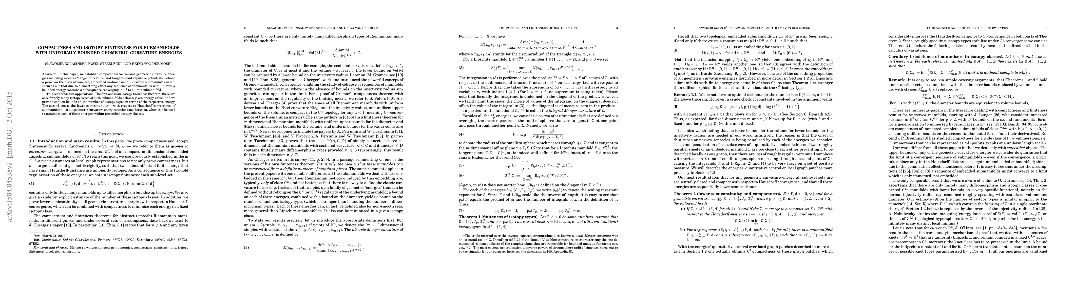 This paper establishes compactness for various geometric curvature energies on embedded submanifolds in R^n, leading to isotopy finiteness theorems and lower semicontinuity results that can be used to minimize these energies within prescribed classes.