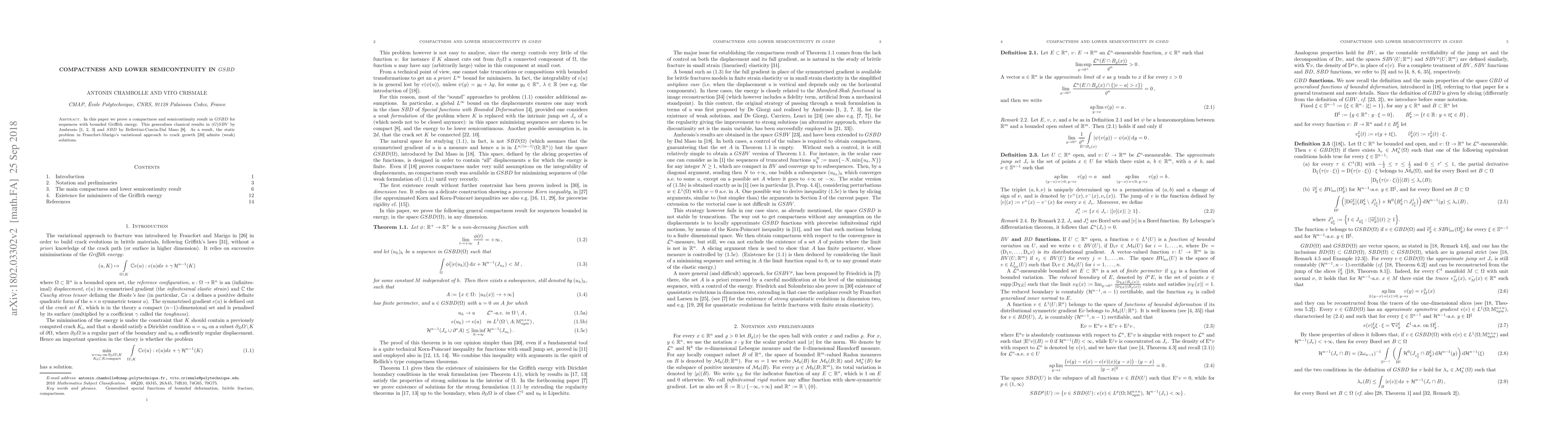 This paper proves compactness and lower semicontinuity in $GSBD$ for sequences with bounded Griffith energy, generalizing classical $(G)SBV$ and $SBD$ results. It also establishes the existence of (weak) solutions for the static problem in Francfort-Marigo's variational approach to crack growth.