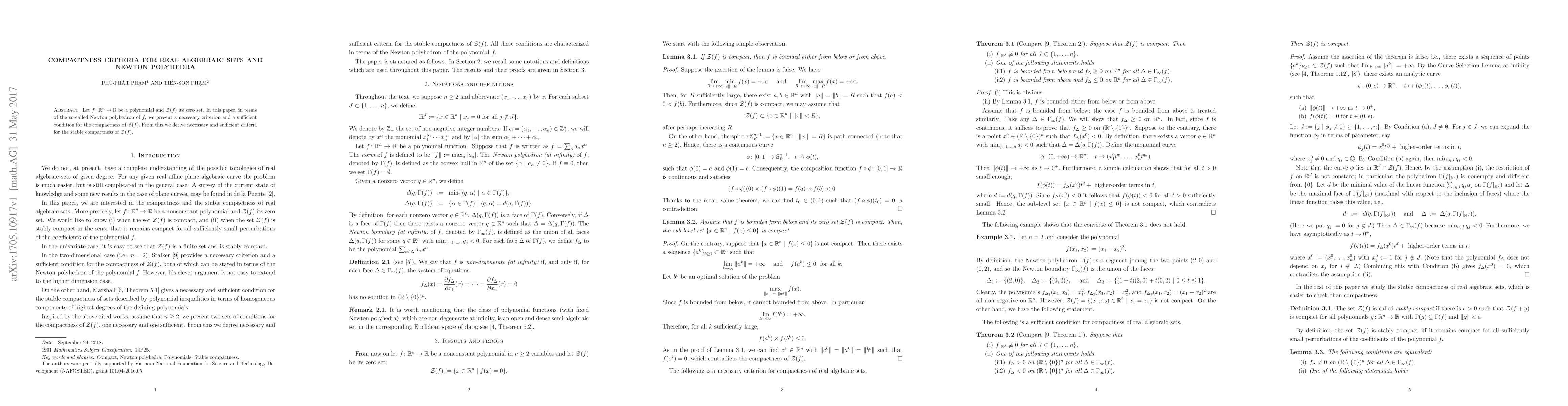 Let $f \colon \mathbb{R}^n \rightarrow \mathbb{R}$ be a polynomial and $\mathcal{Z}(f)$ its zero set. In this paper, in terms of the so-called Newton polyhedron of $f,$ we present a necessary criterion and a sufficient condition for the compactness of $\mathcal{Z}(f).$ From this we derive necessary and sufficient criteria for the stable compactness of $\mathcal{Z}(f).$