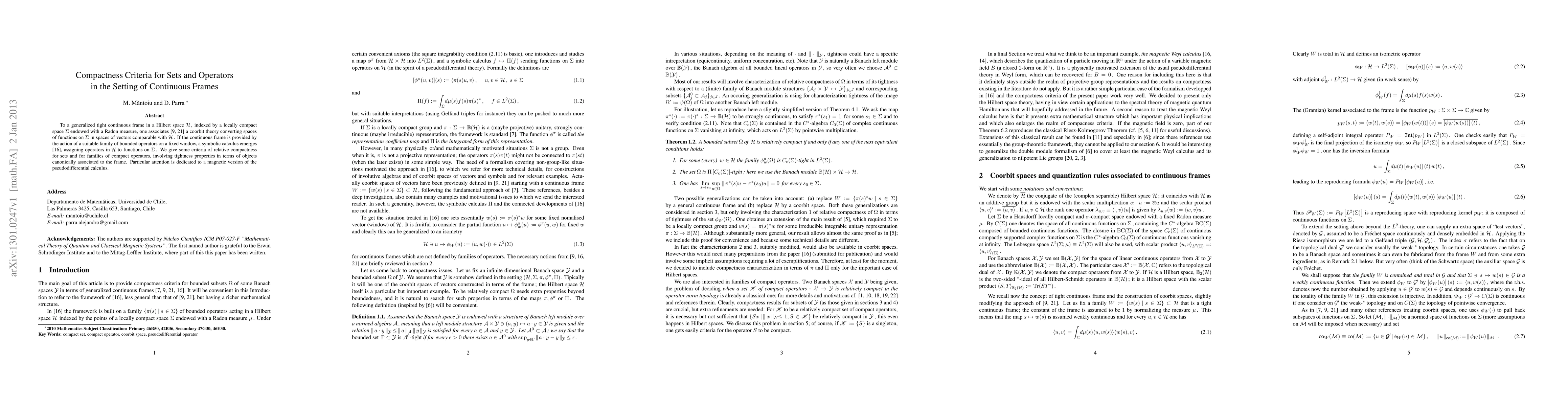 To a generalized tight continuous frame in a Hilbert space $\H$ indexed by a locally compact space $\Si$ endowed with a Radon measure, one associates a coorbit theory converting spaces of functions on $\Si$ in spaces of vectors comparable with $\H$. If the continuous frame is provided by the action of a suitable family of bounded operators on a fixed window, a symbolic calculus emerges, assigning operators in $\H$ to functions on $\Si$. We give some criteria of relative compactness for sets and for families of compact operators, involving tightness properties in terms of objects canonically associated to the frame. Particular attention is dedicated to a magnetic version of the pseudodifferential calculus.