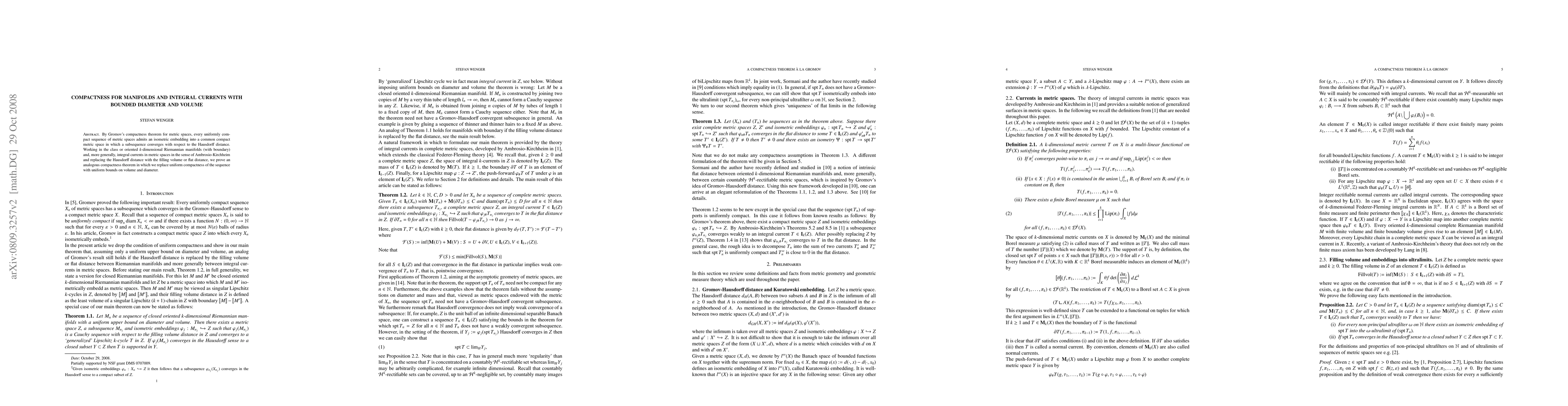 Summary: This paper extends Gromov's compactness theorem to oriented Riemannian manifolds and integral currents by proving a compactness result based on uniform bounds on volume and diameter, replacing the traditional Hausdorff distance with filling volume or flat distance.